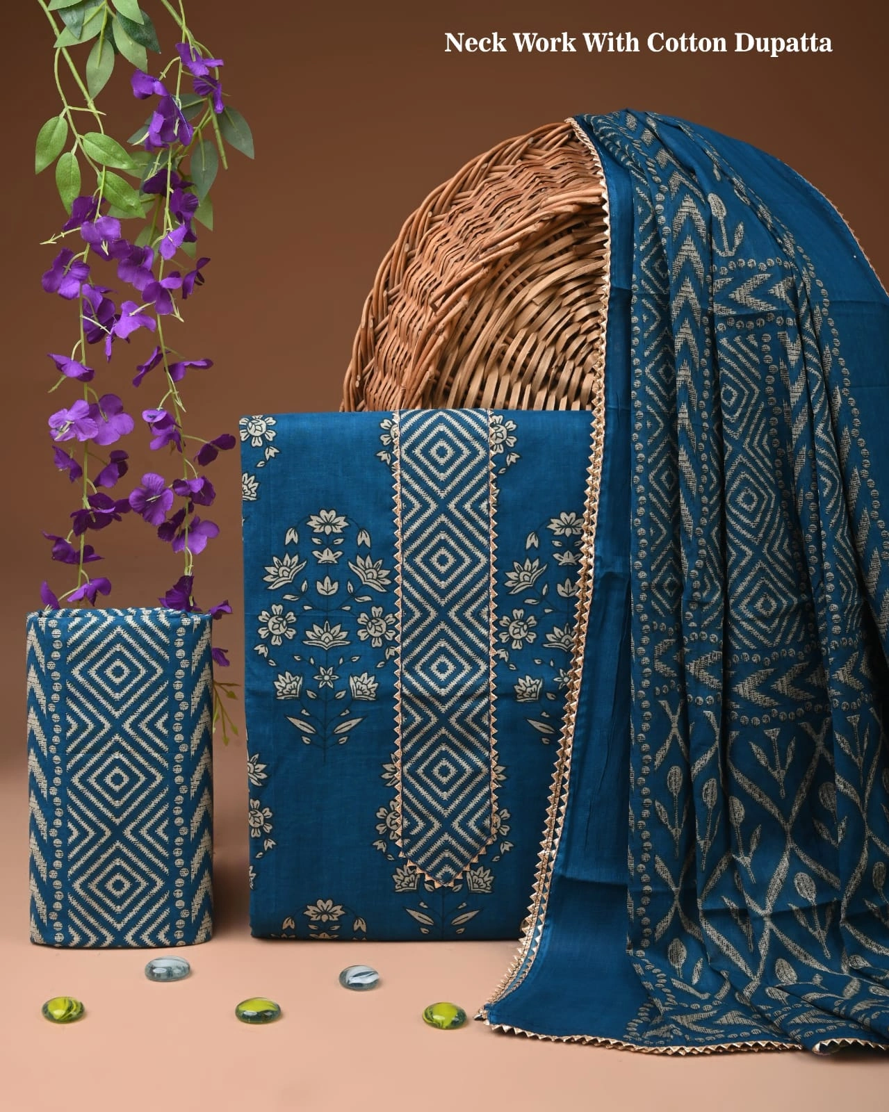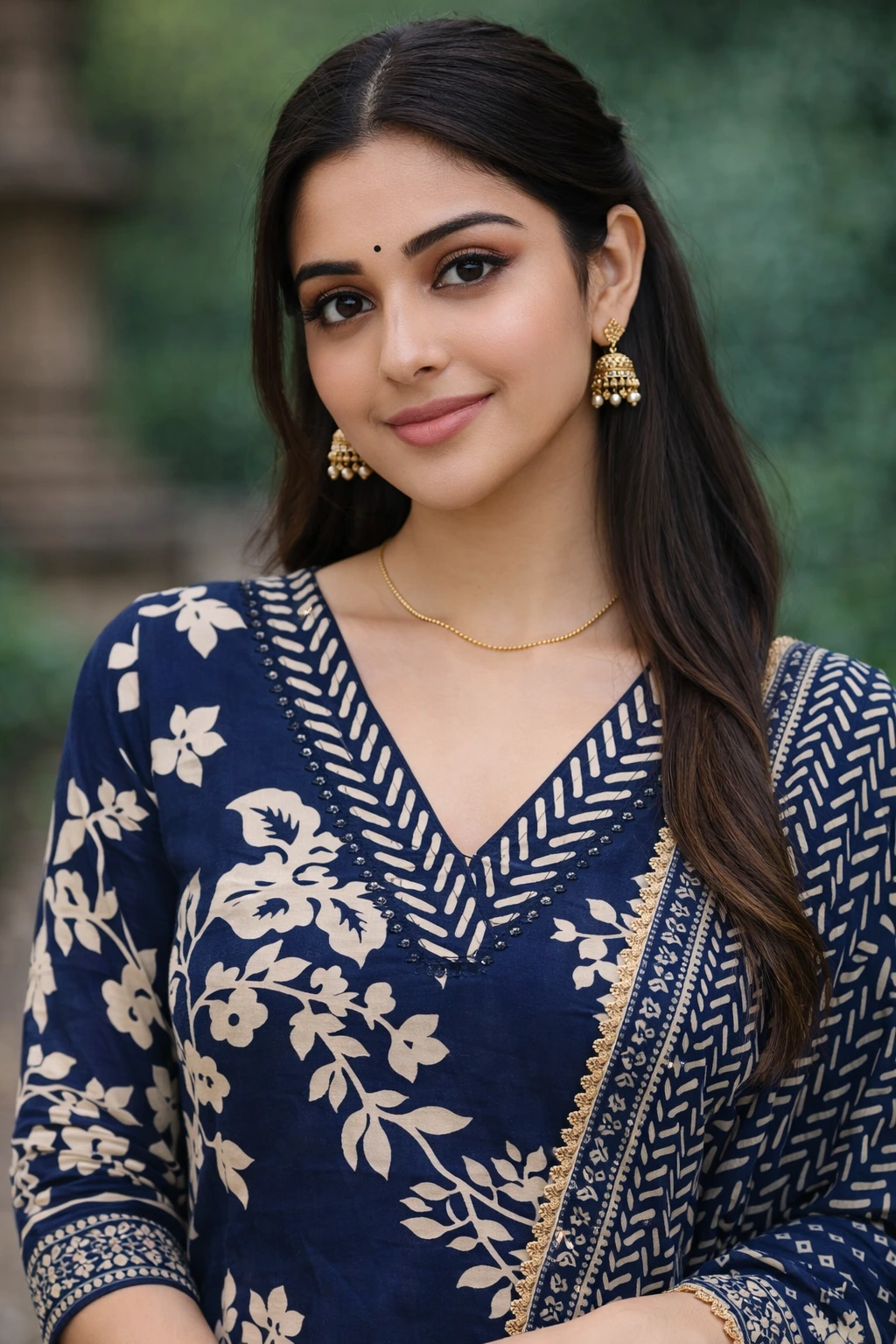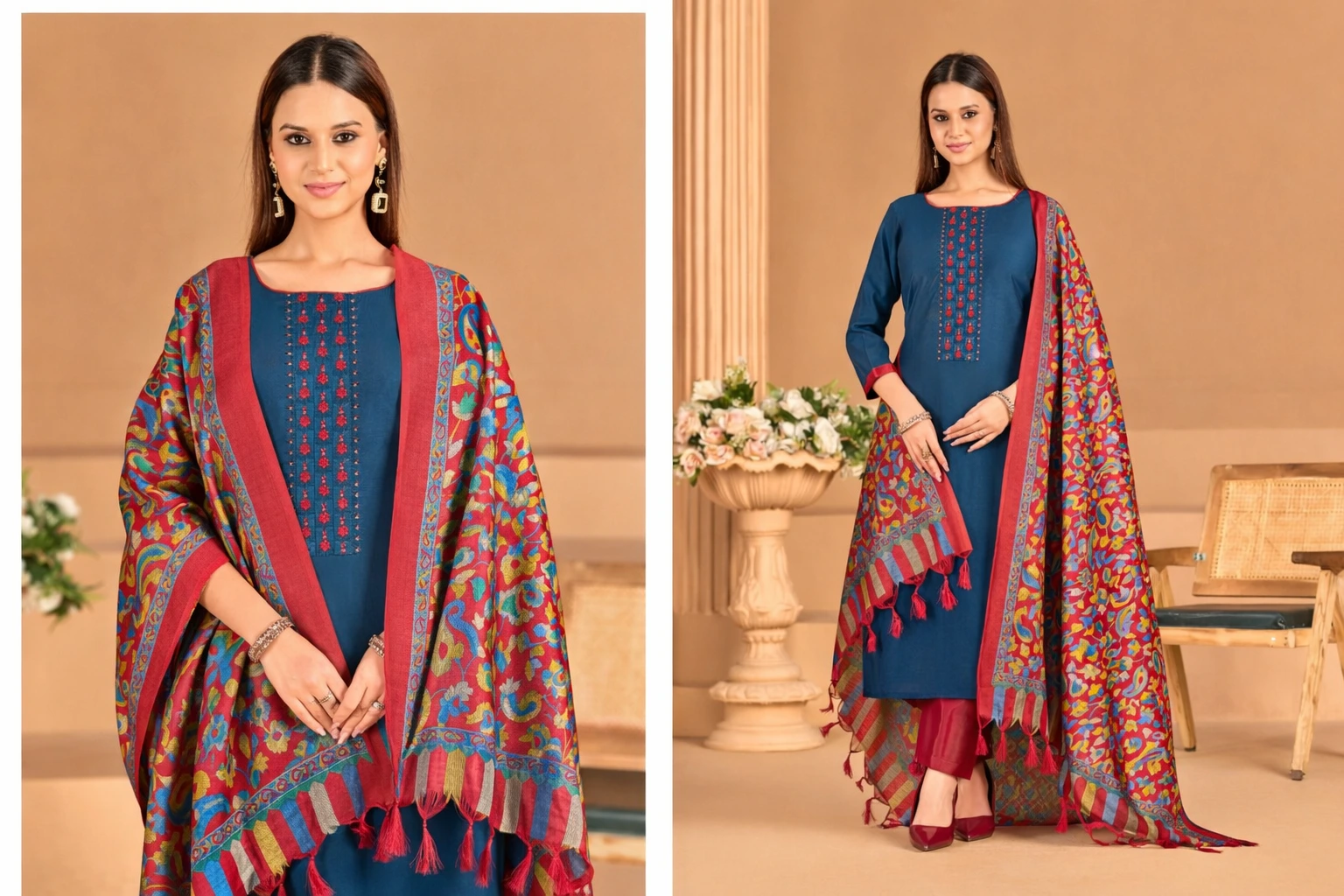 Roman Silk Salwar Suit with Bhagalpuri Dupatta – Navy Blue and Maroon