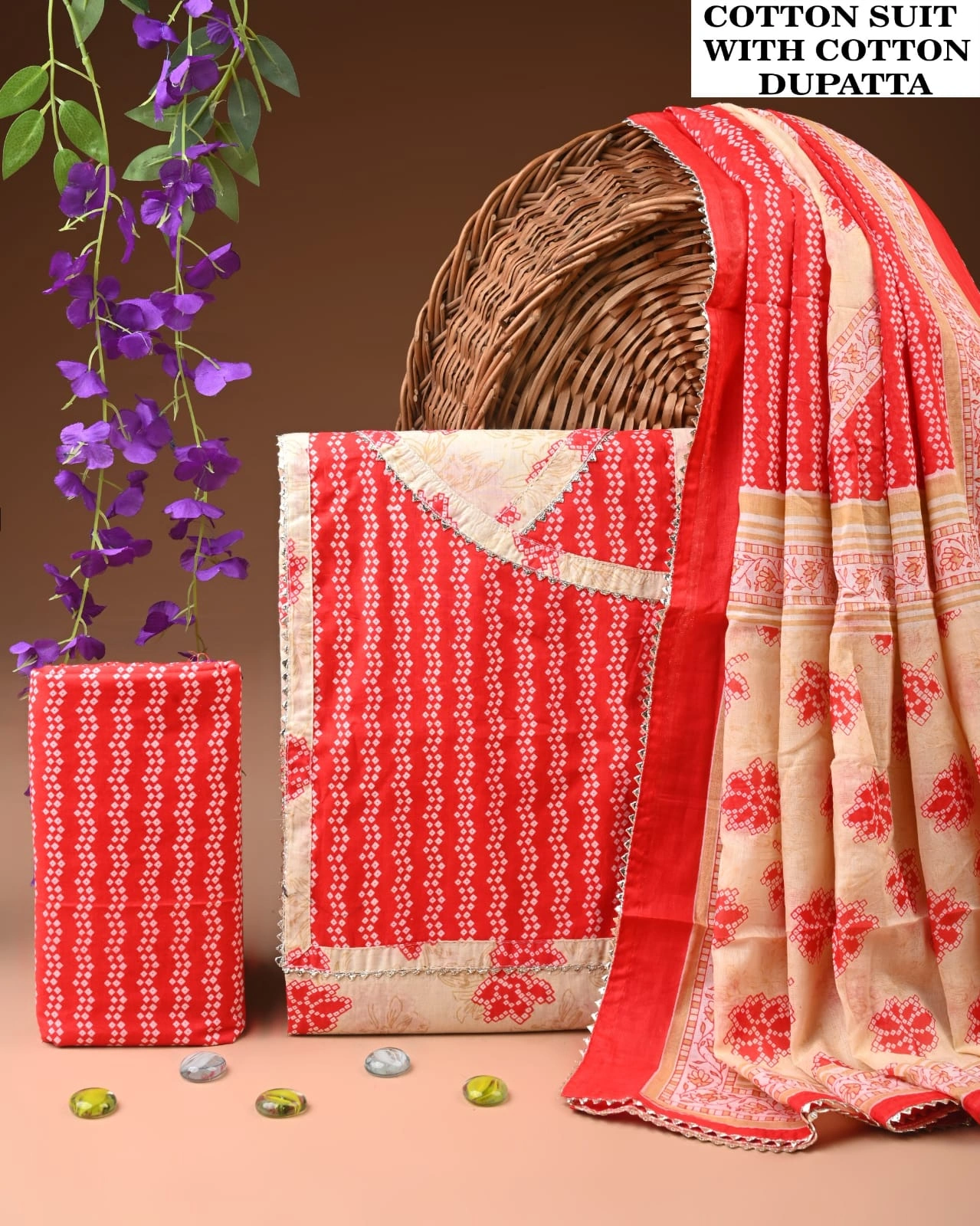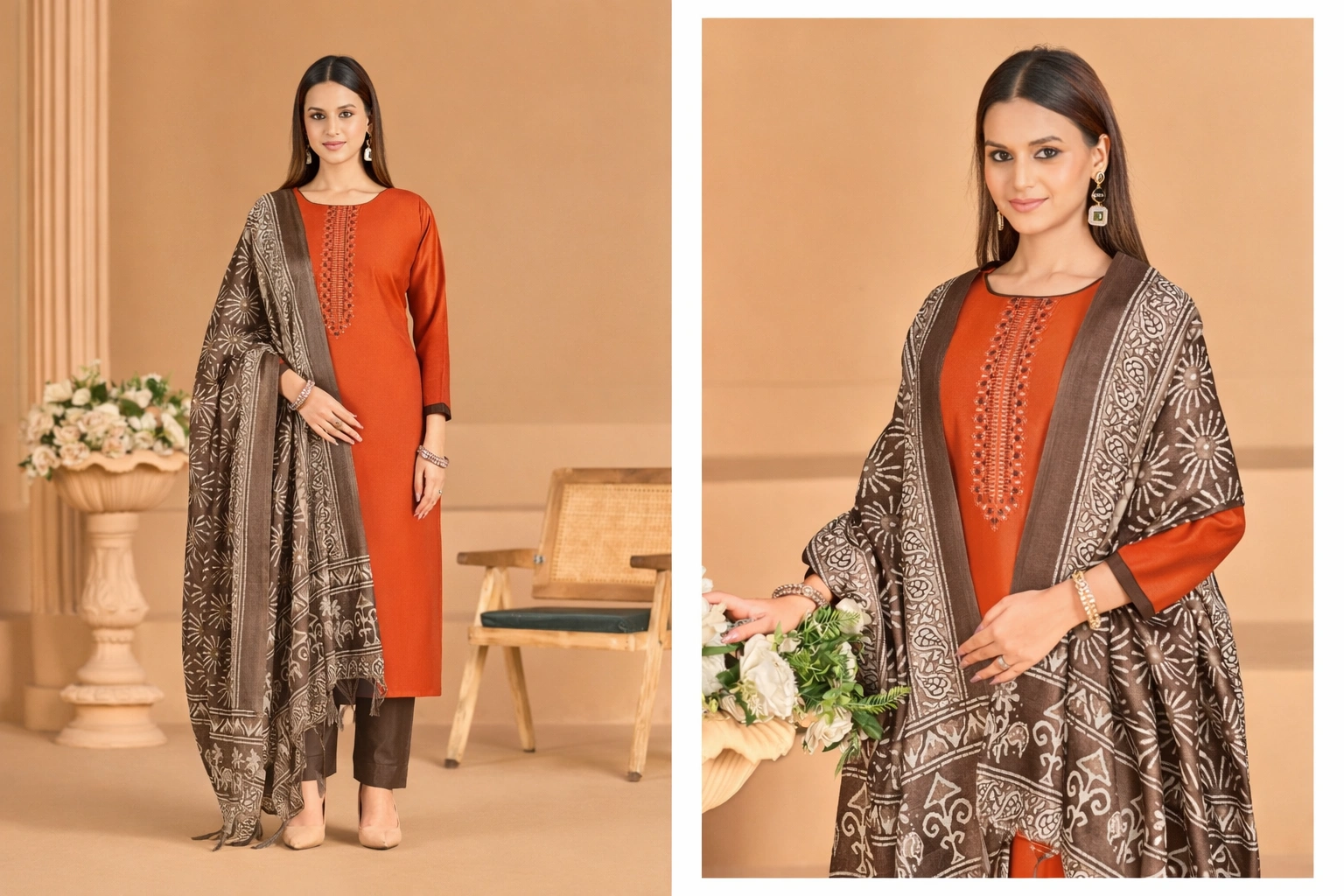 Roman Silk Salwar Suit with Bhagalpuri Dupatta – Orange and Brown