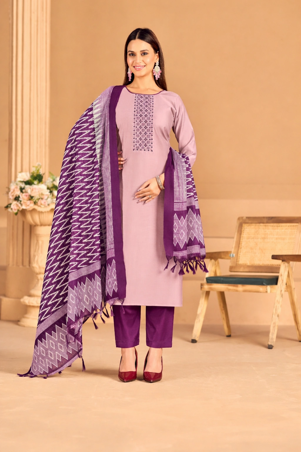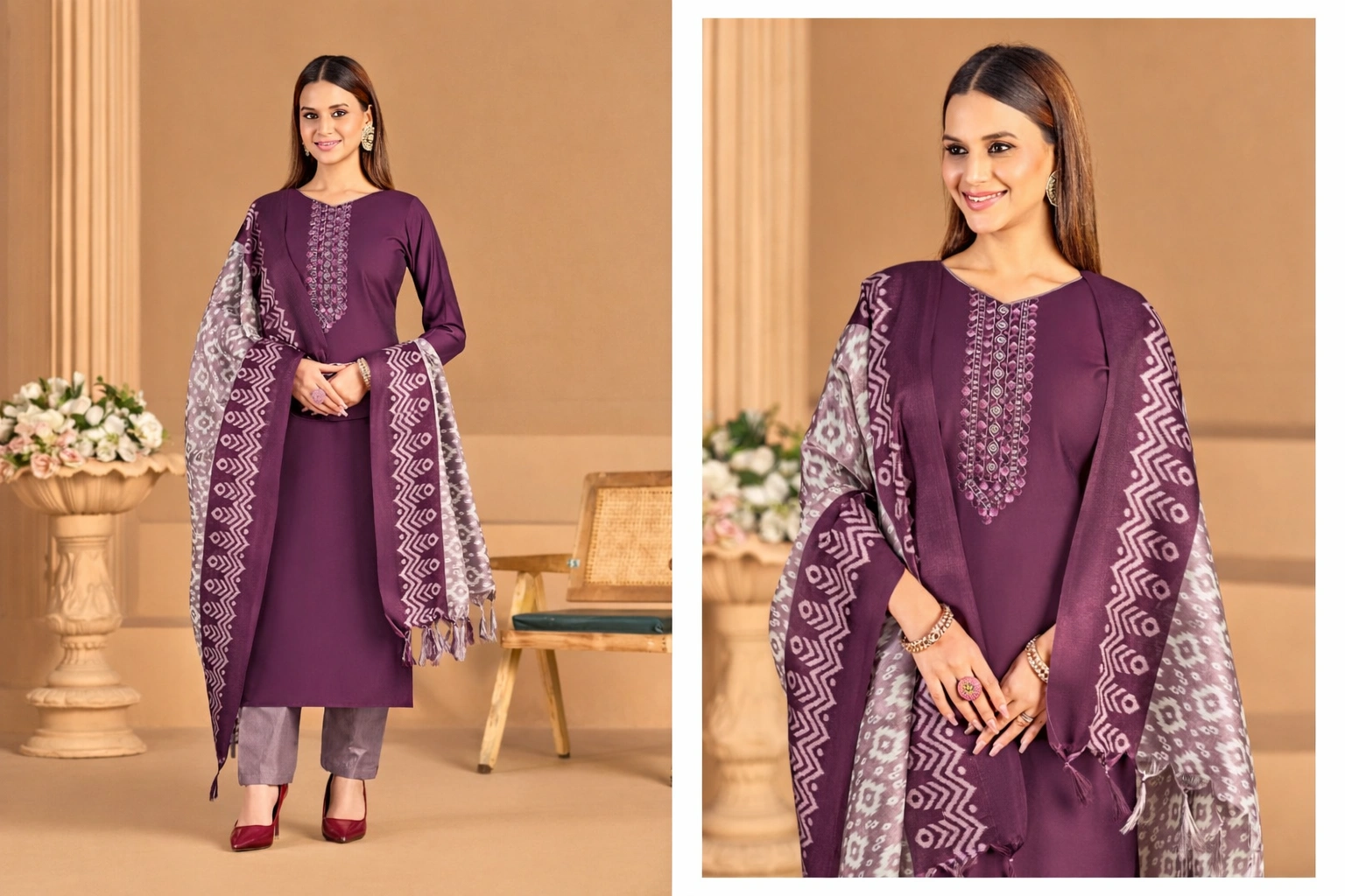Roman Silk Salwar Suit with Bhagalpuri Dupatta – Deep Purple and Lavender