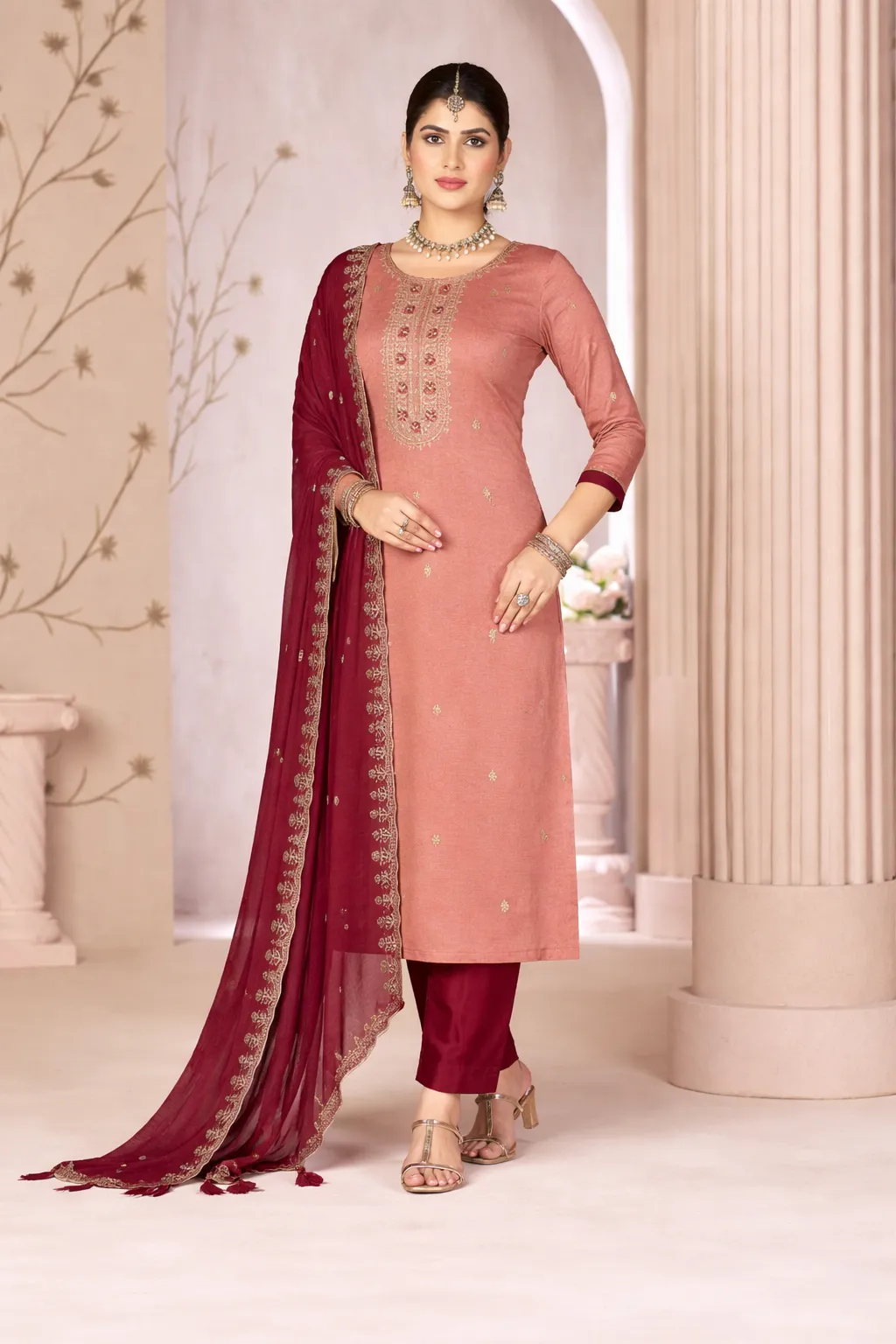 Roman Silk Salwar Suit with Bhagalpuri Dupatta – Pink and Slate Blue
