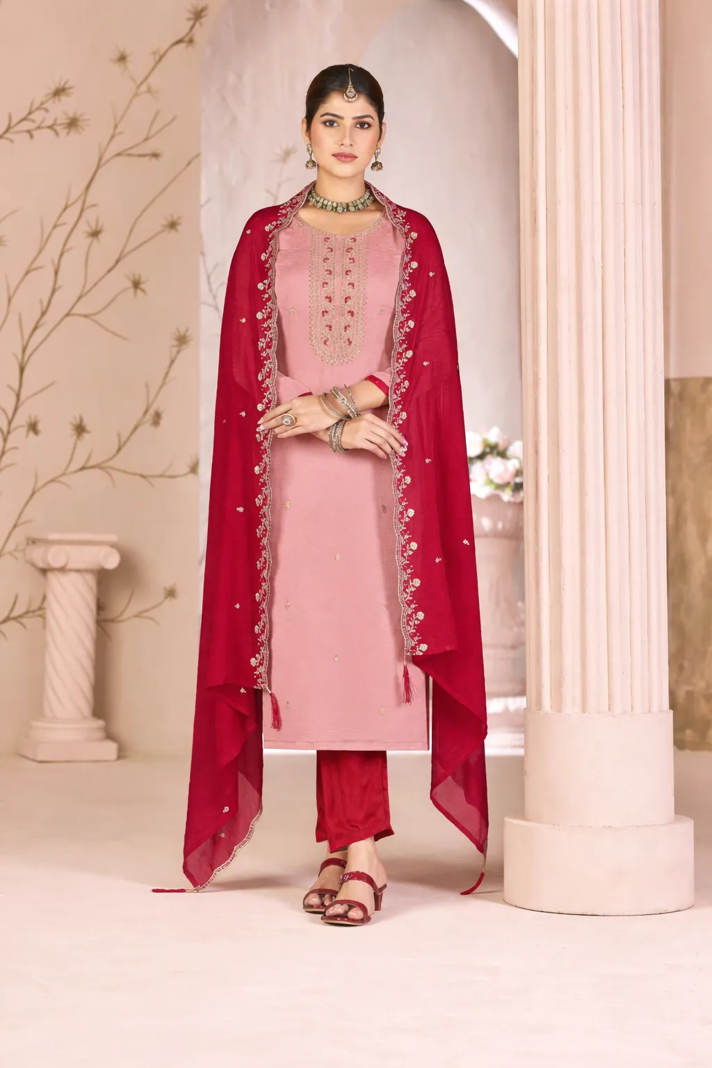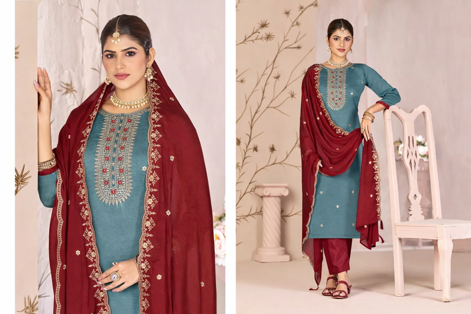 Fancy Salwar Suit in Teal and Burgundy