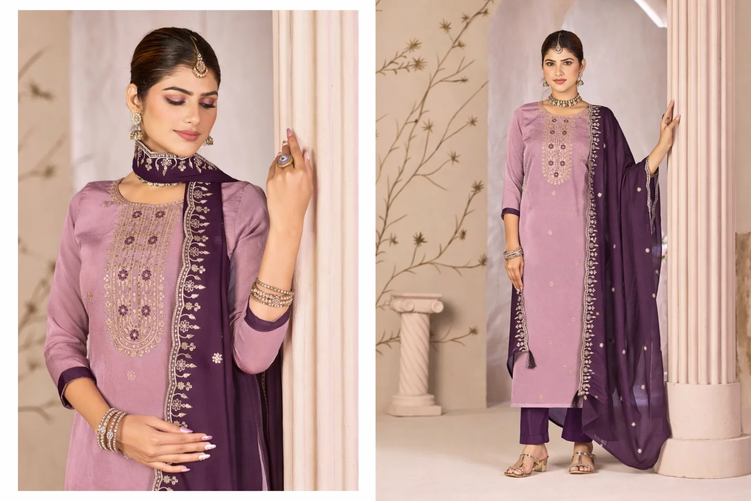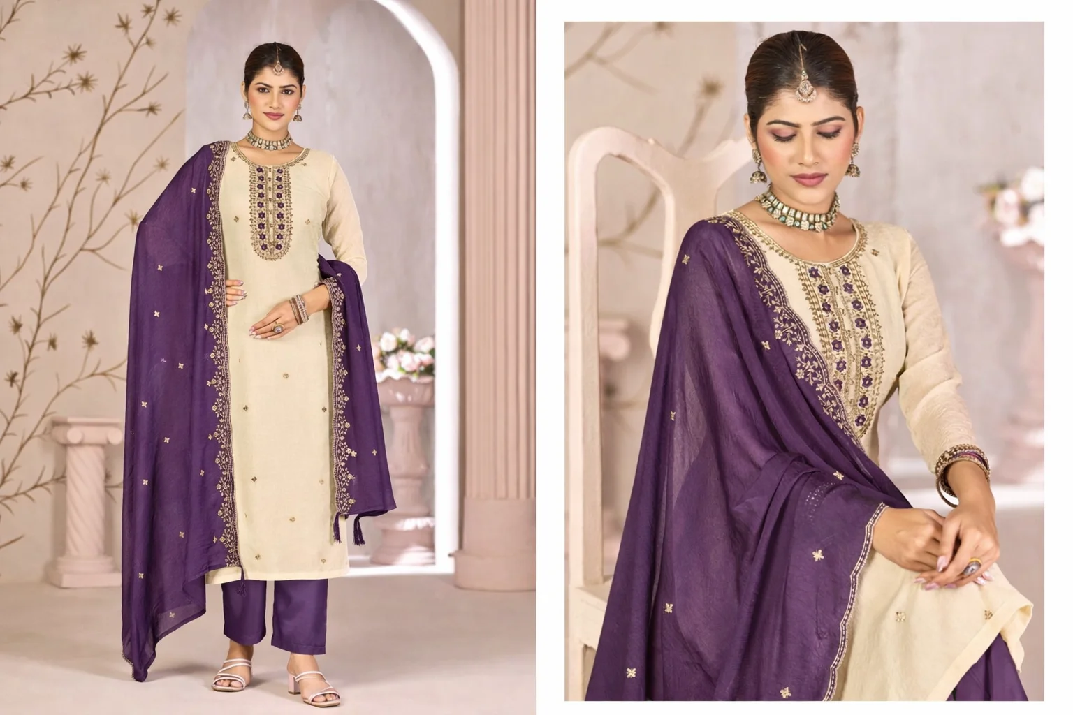 Fancy Salwar Suit in Cream and Purple