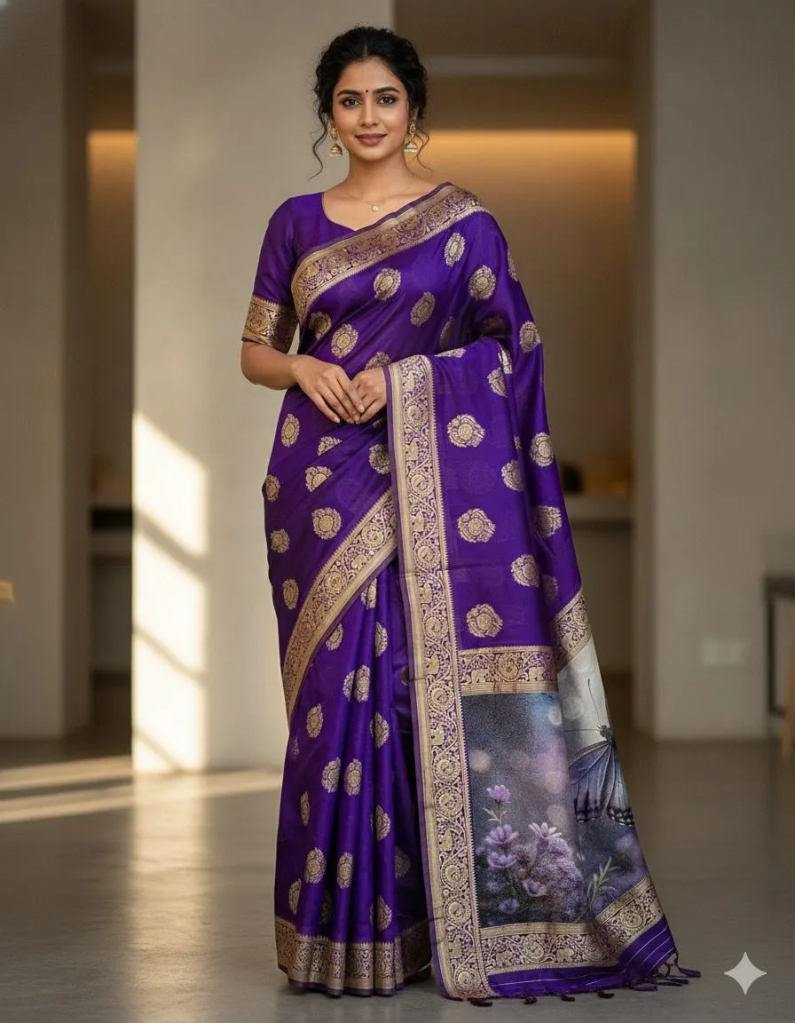 Royal Violet Banarasi-Inspired Zari Woven Silk Saree