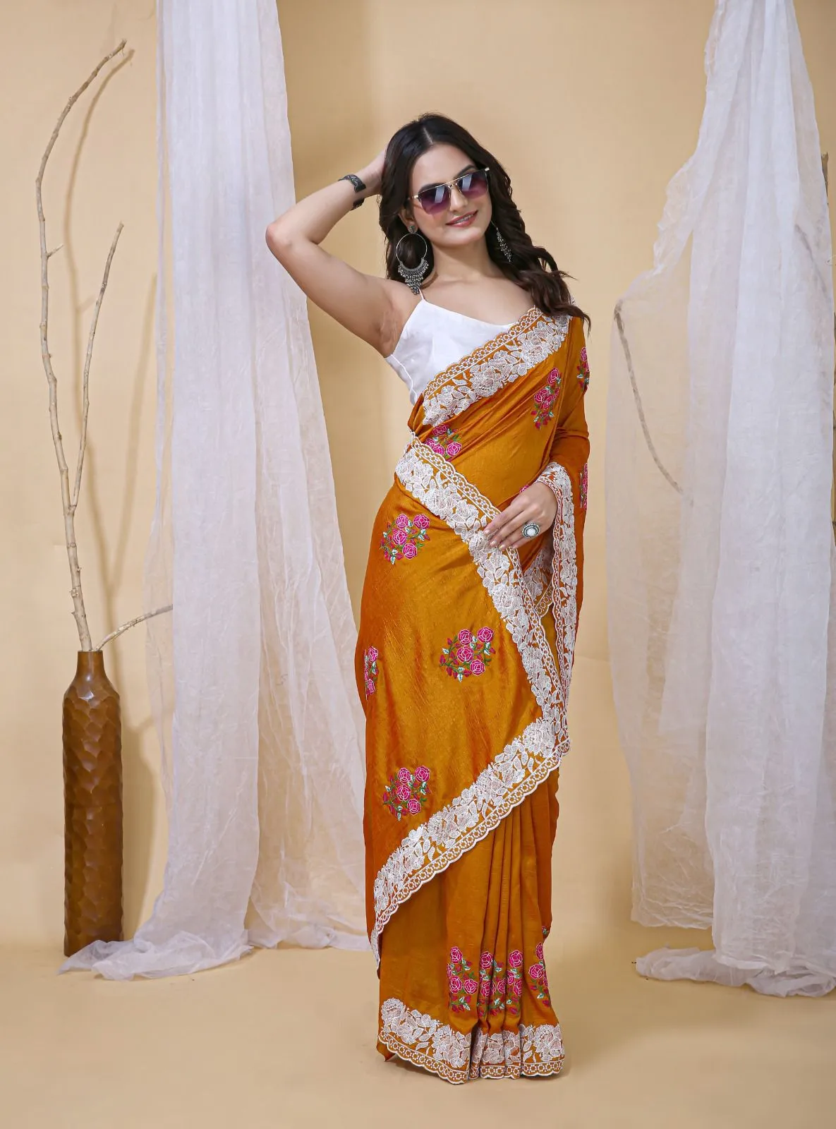 Sunset Ombre Orange–Pink Chinnon Designer Saree with Sequence Work