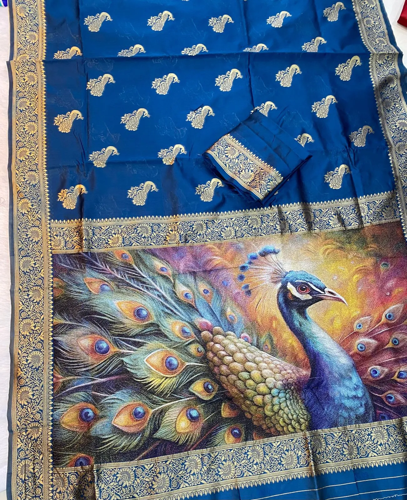 Royal Peacock Blue Banarasi-Inspired Zari Weave Saree
