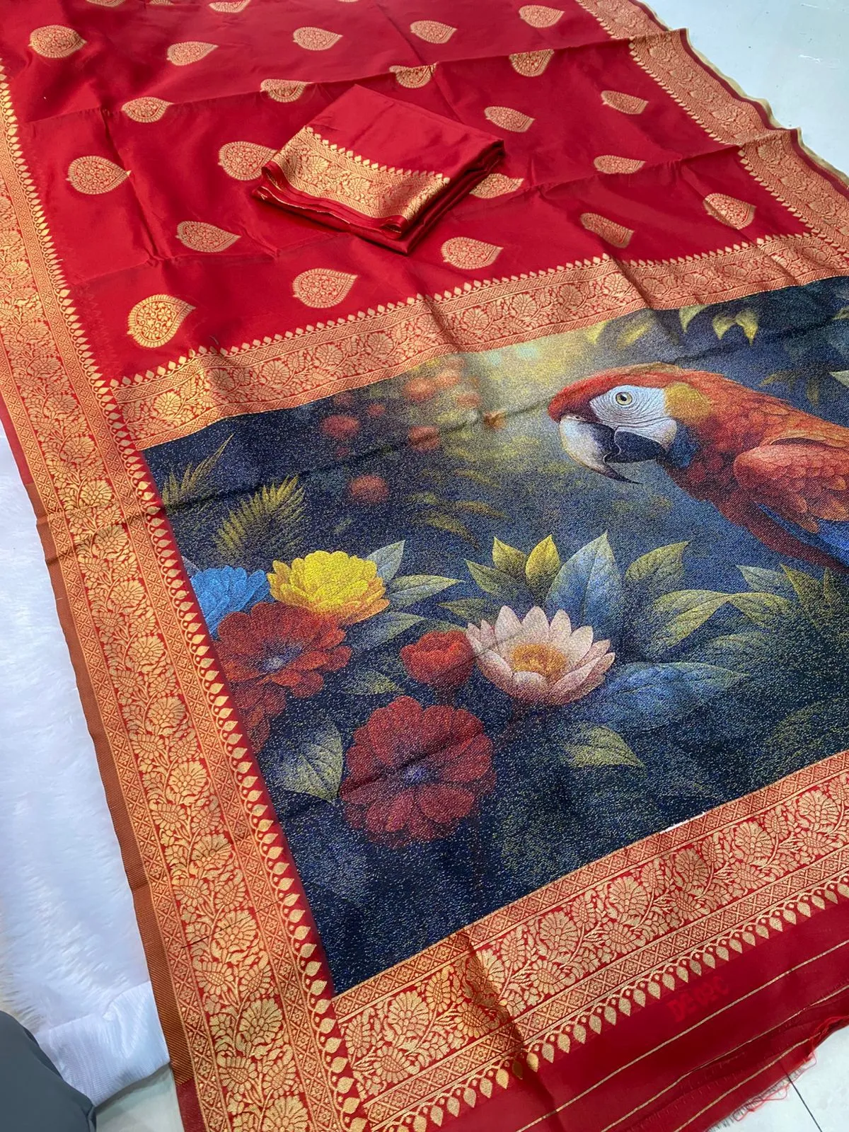 Classic Crimson Red Banarasi-Inspired Zari Woven Saree