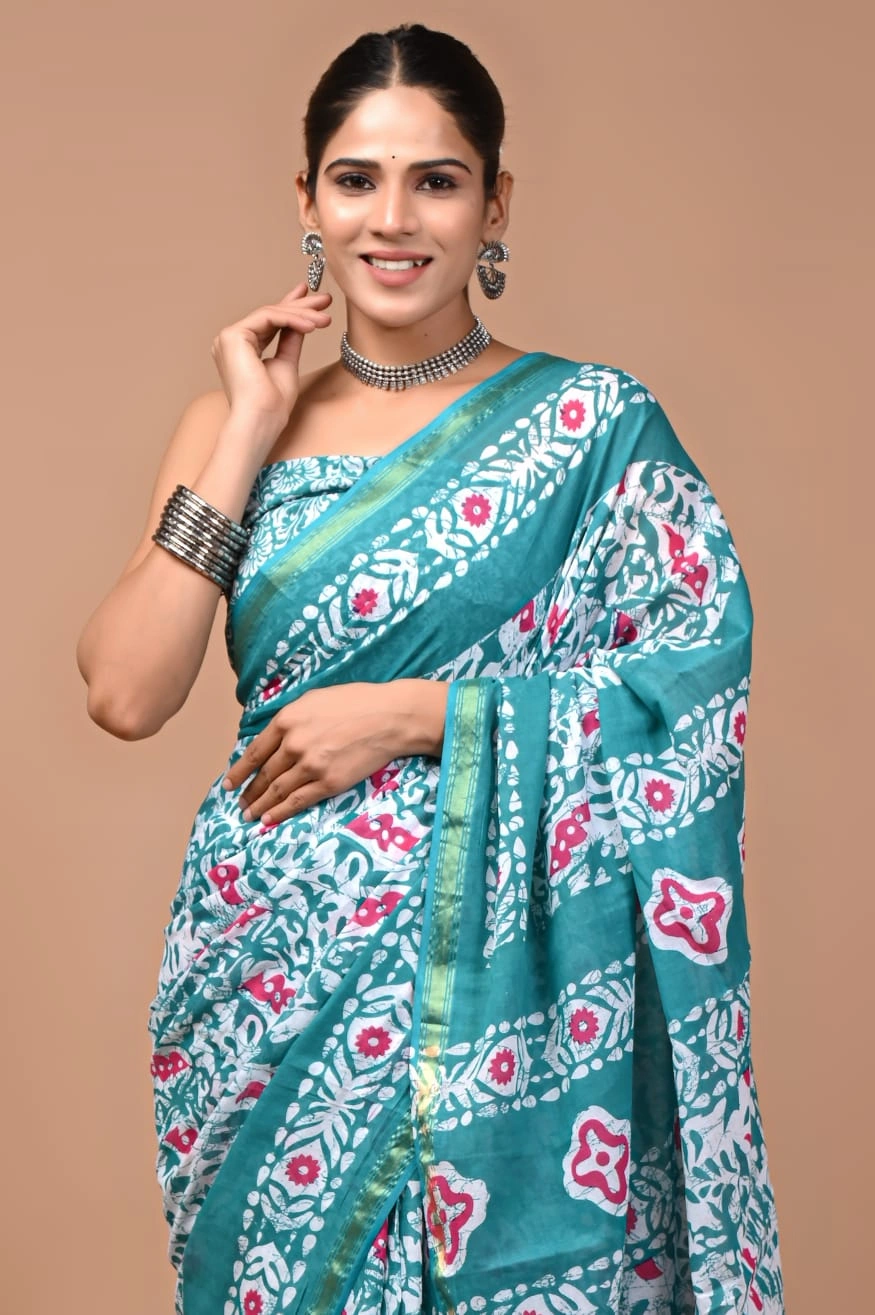 Soft Cotton Zari Sarees – Blue Turquoise