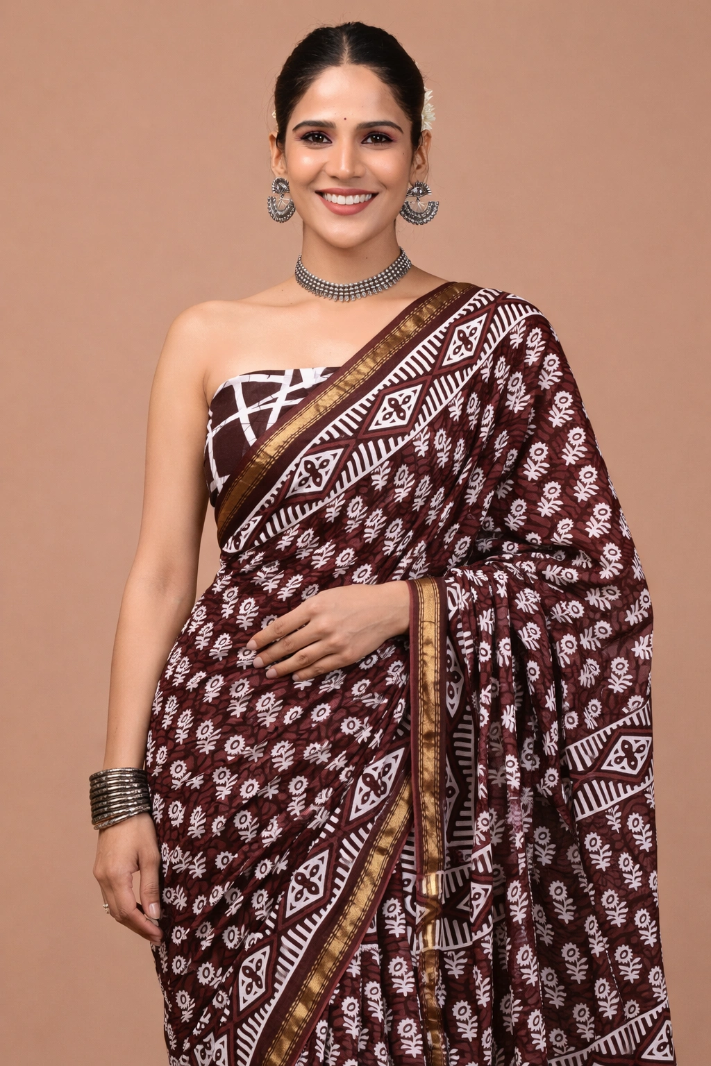Soft Cotton Zari Sarees – Chocolate Brown