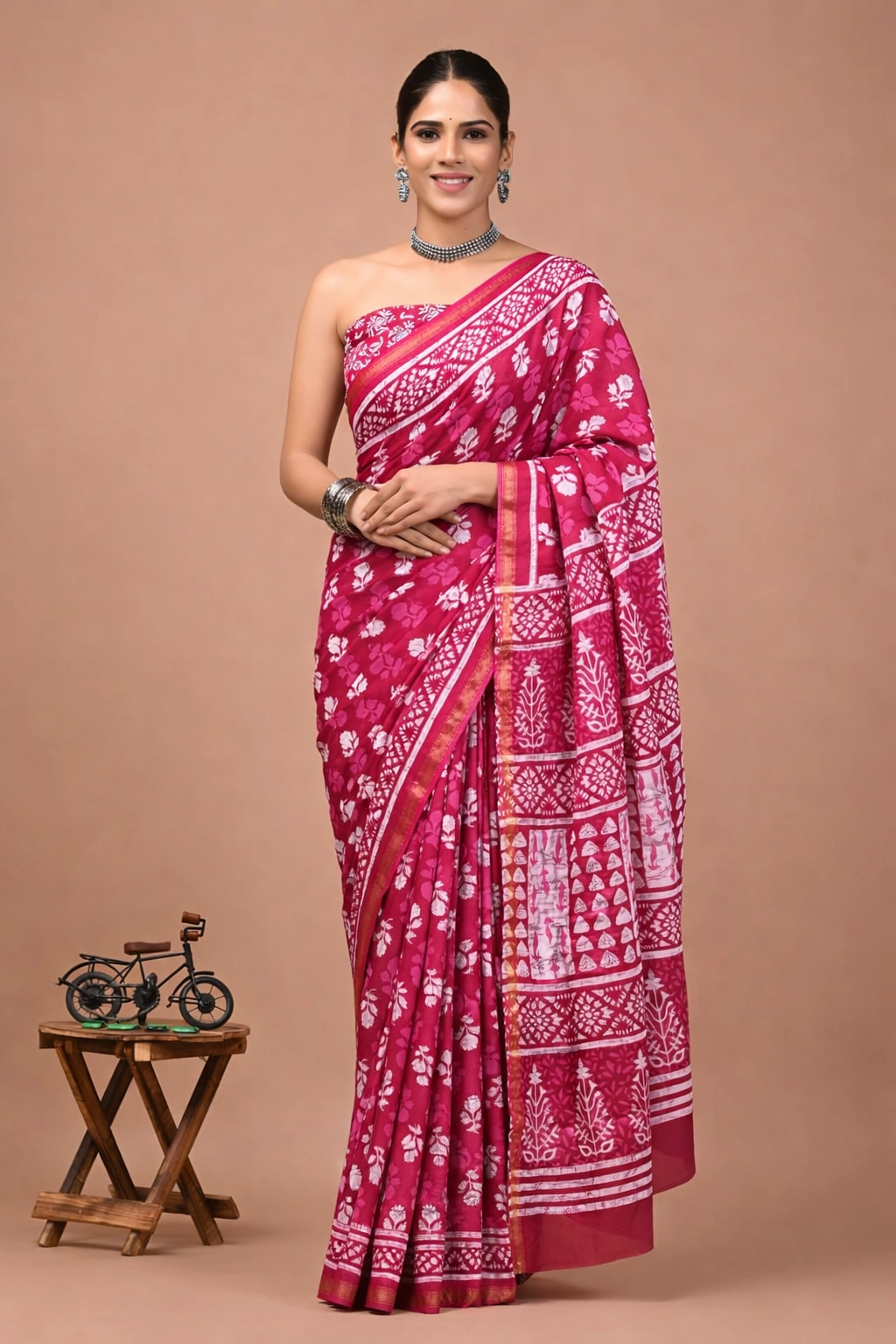 Soft Cotton Zari Sarees – Magenta