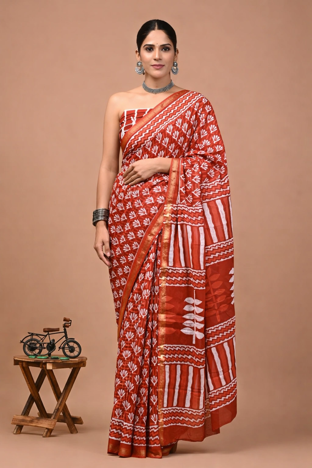Soft Cotton Zari Sarees – Rust Orange
