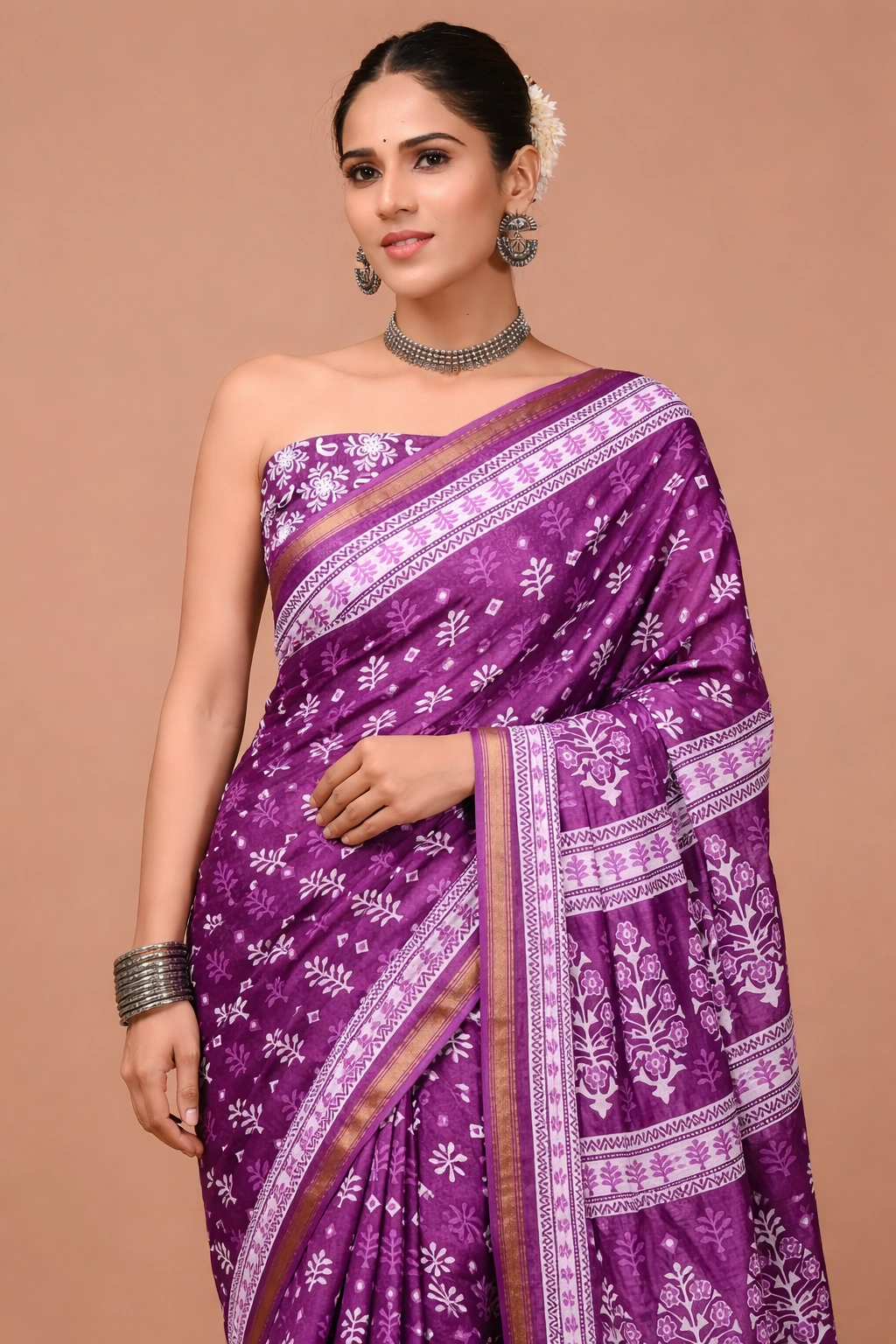 Soft Cotton Zari Sarees – Deep Violet