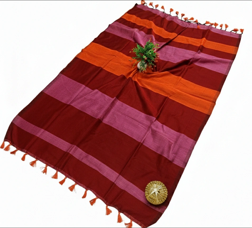 Handloom Maheshwari Cotton Silk Sarees – Deep Wine with Pinkish-Purple Pallu