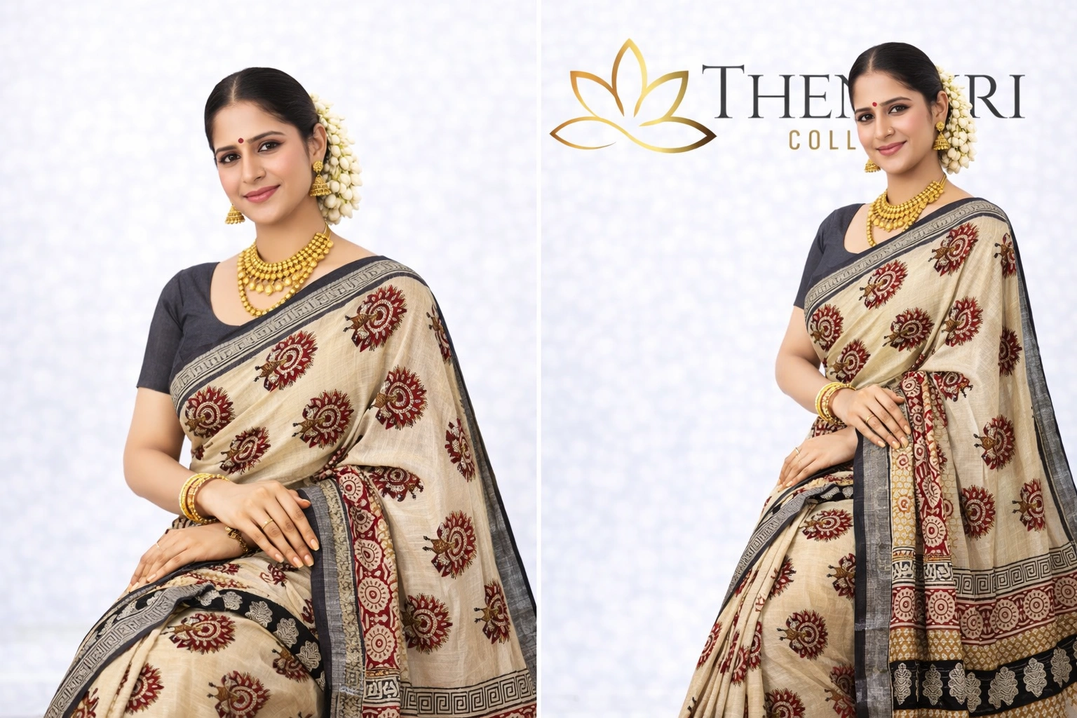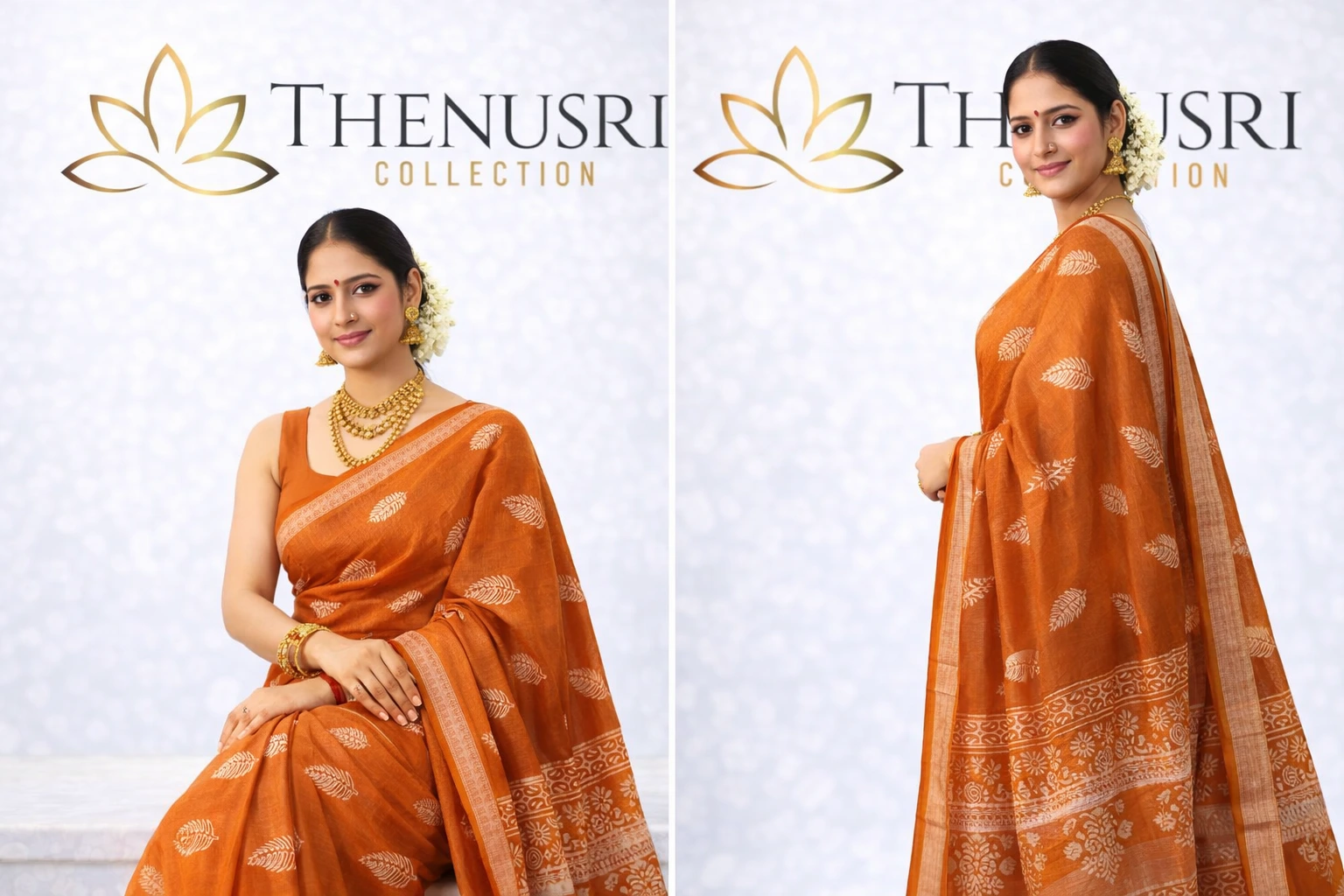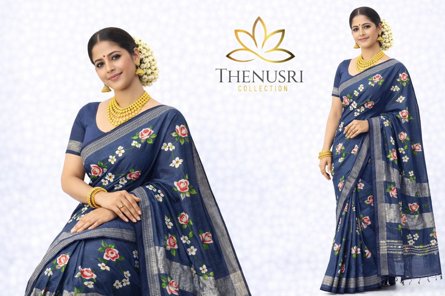Linen Cotton Saree – Floral design