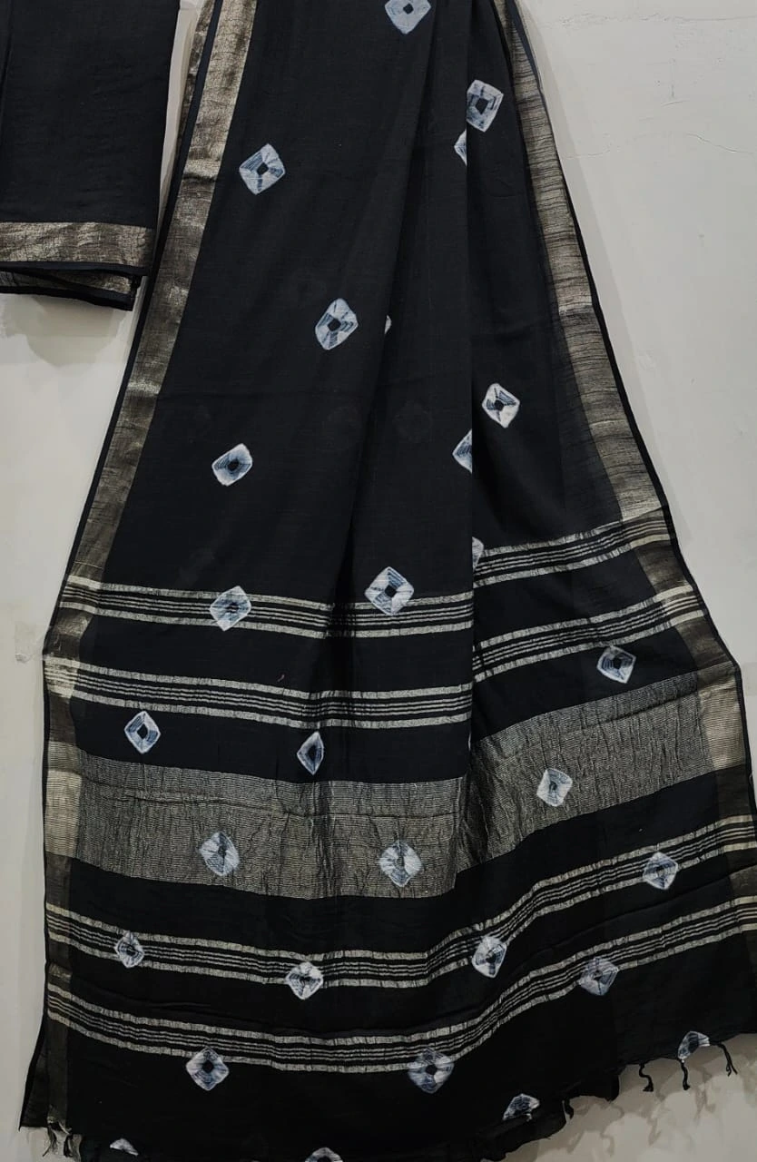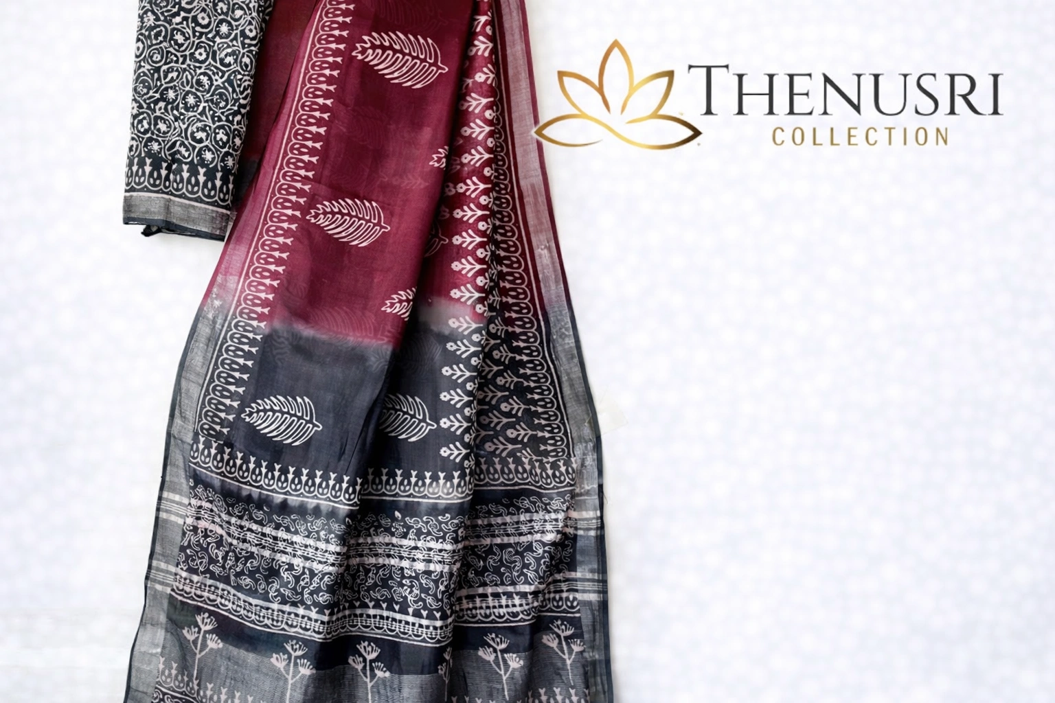 Linen Cotton Saree – Maroon and Black