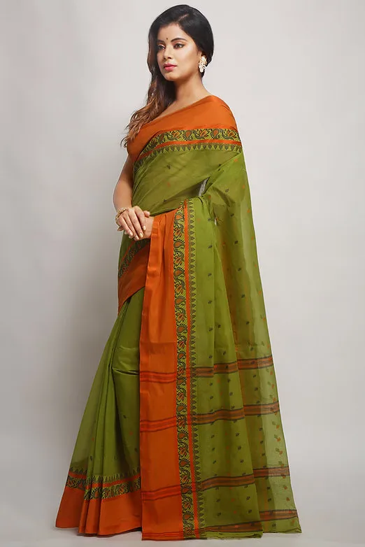 Pure Cotton Handloom sarees with blouse piece – Olive Green