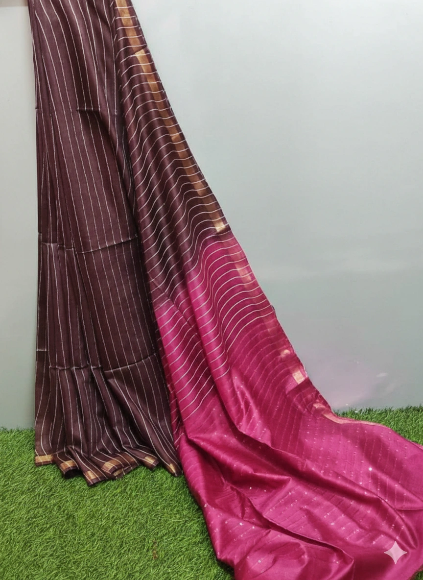Kota Slub Sequence with Zari all over Saree – Deep Chocolate Brown with Magneta Pink Pallu