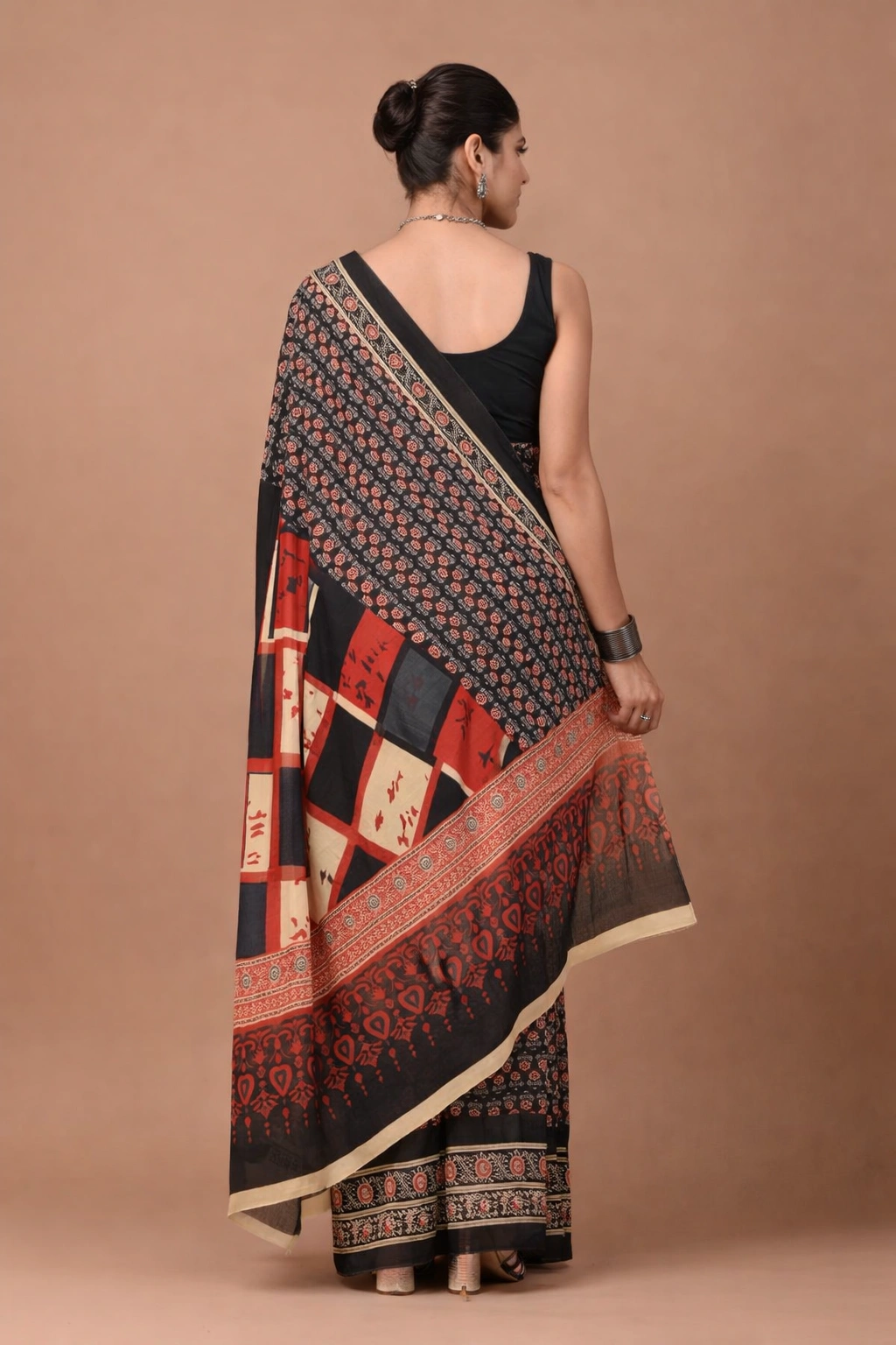 Classic Bagru Block Print Cotton MulMul Sarees with Blouse – Red & Beige