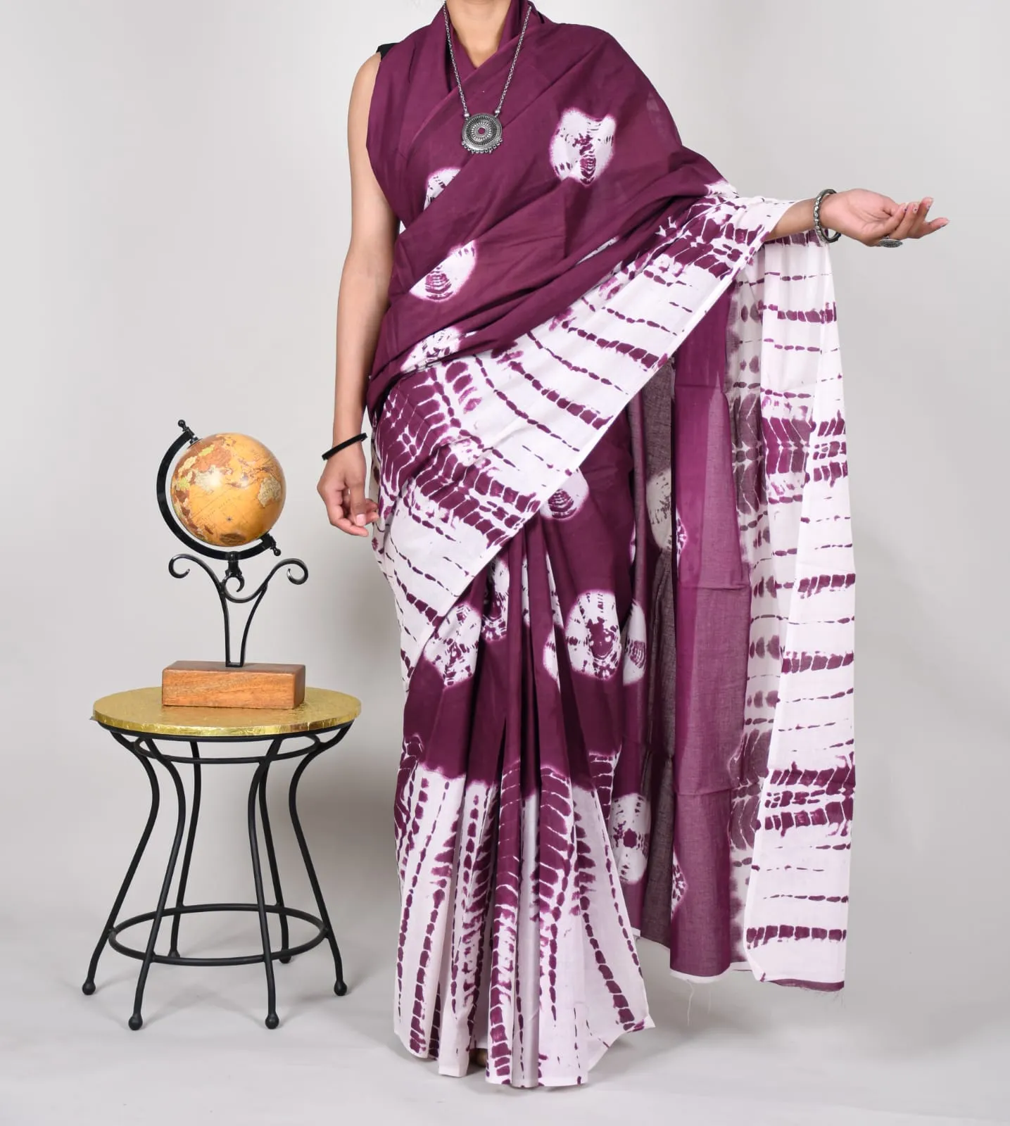 Bagru Block Print Cotton MulMul Sarees with Blouse – deep maroon and white color palette