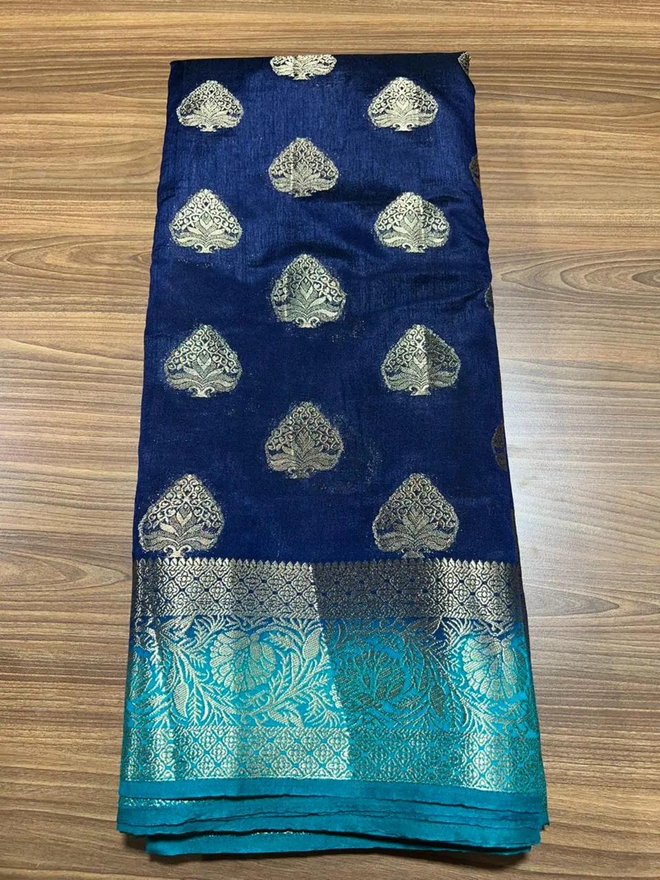 Semi Tusser Silk Saree with Blouse – Indigo Blue
