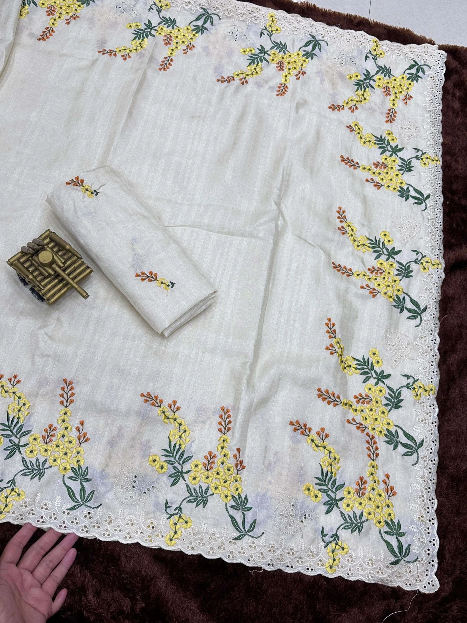 Pure Cotton Saree with Needle Weaving and Running Blouse Piece