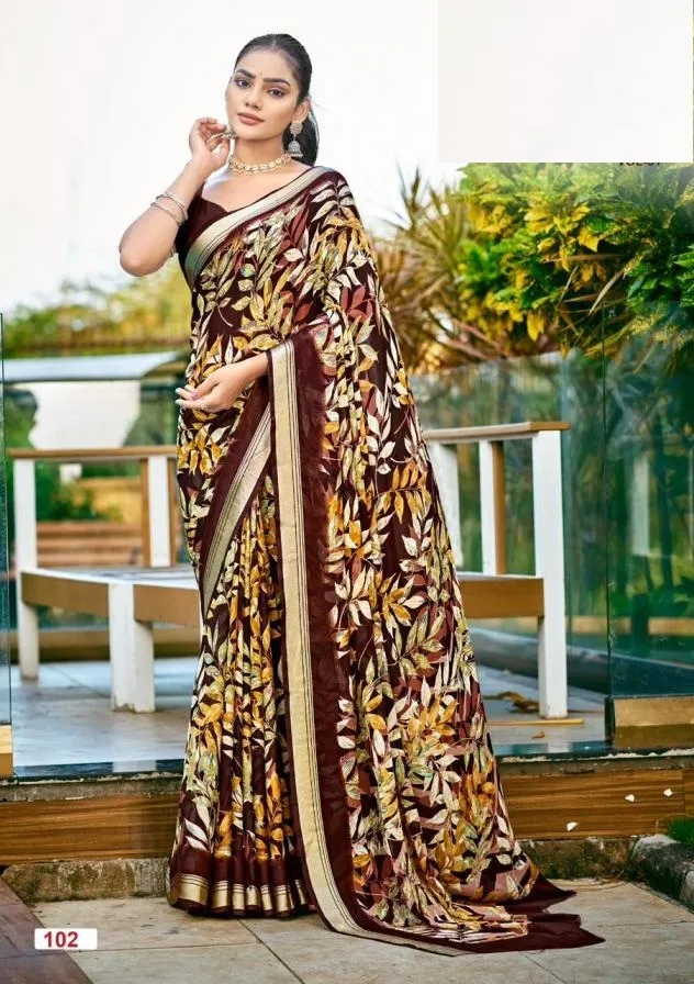 Amazing Moss Viscose Saree with floral design with printed blouse by Thenusri collection