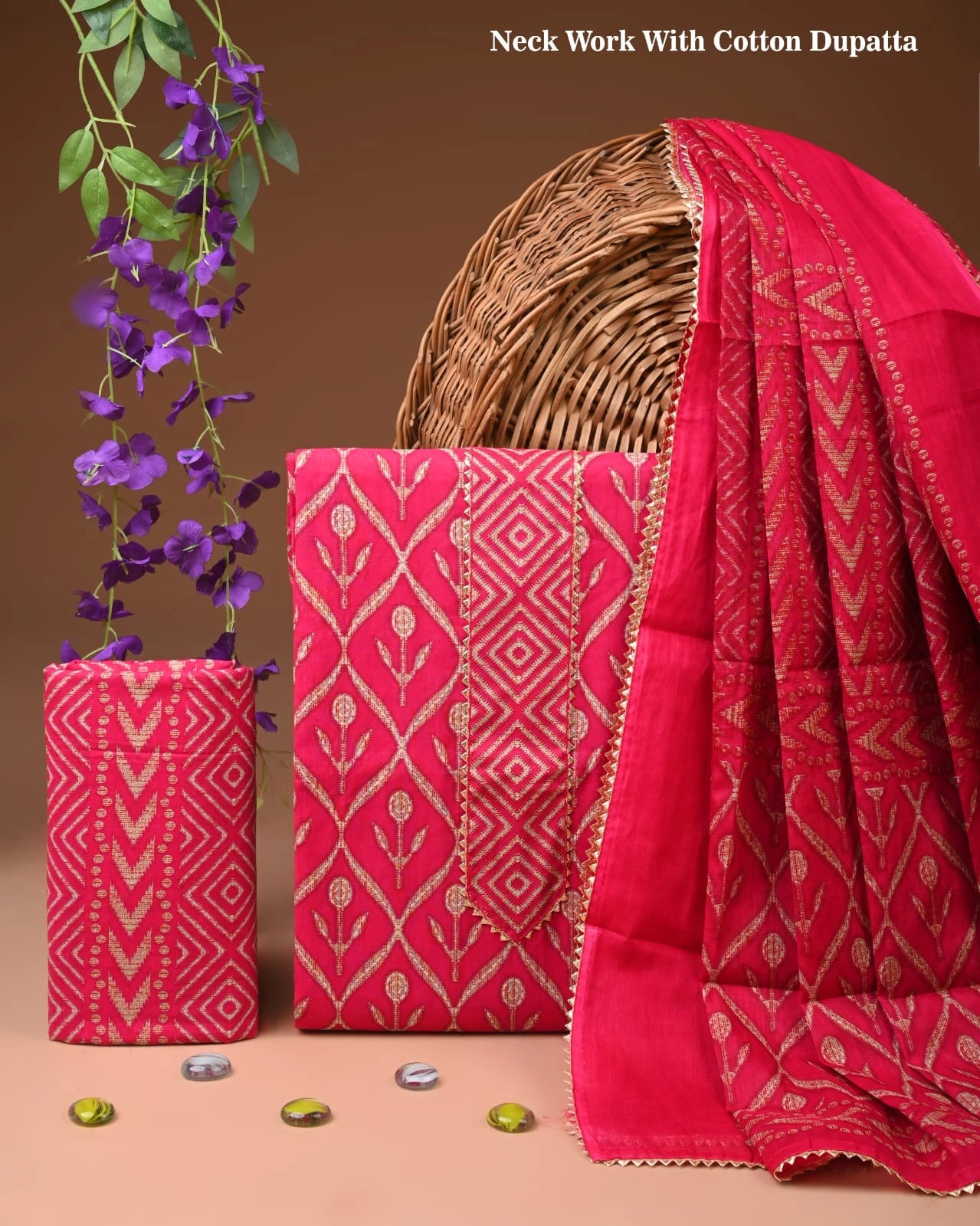 Cotton suits with gota patti work – Pink