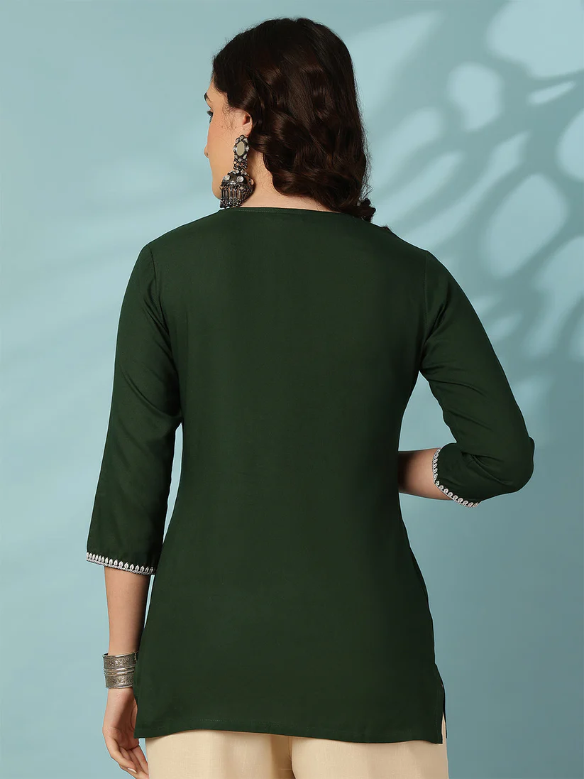 Green Embroidered Viscose Rayon Top