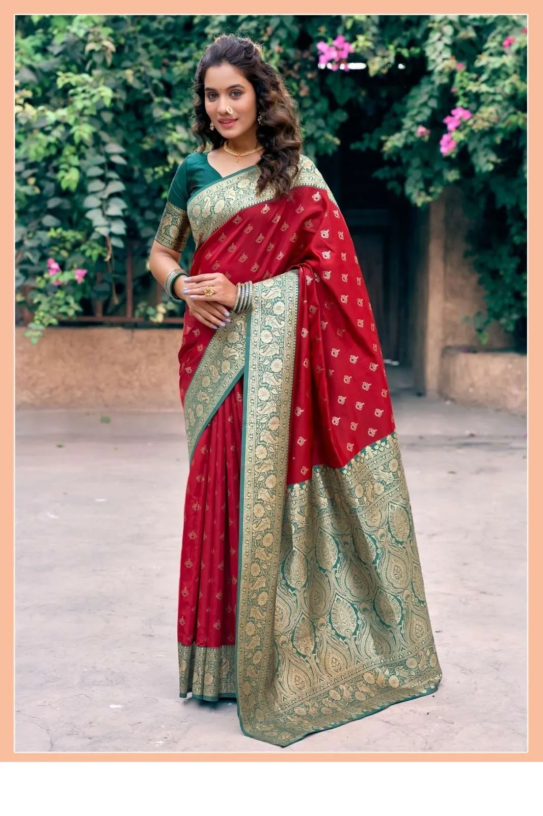 Be the first to review “Fancy Silk Saree – Cherry Red”