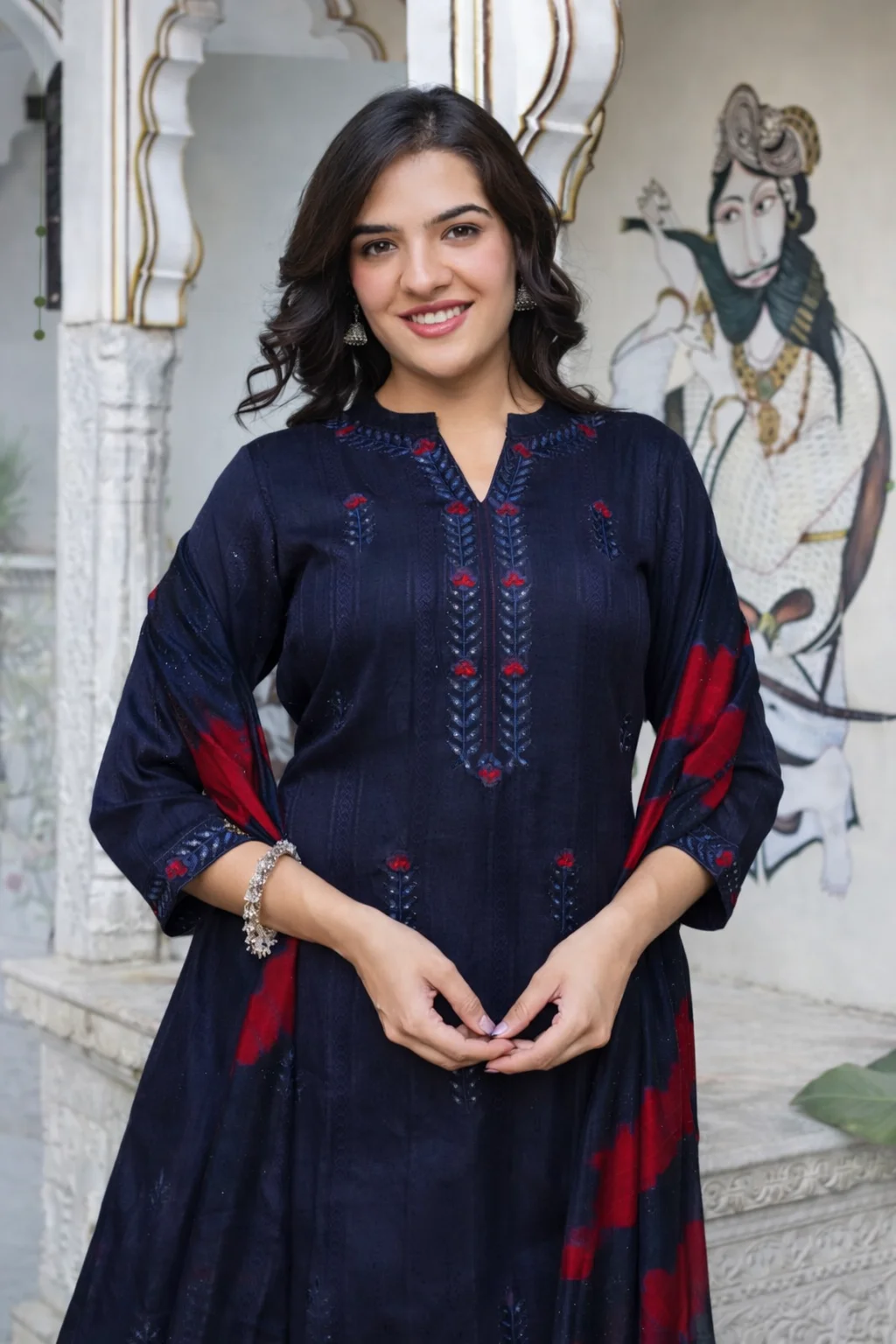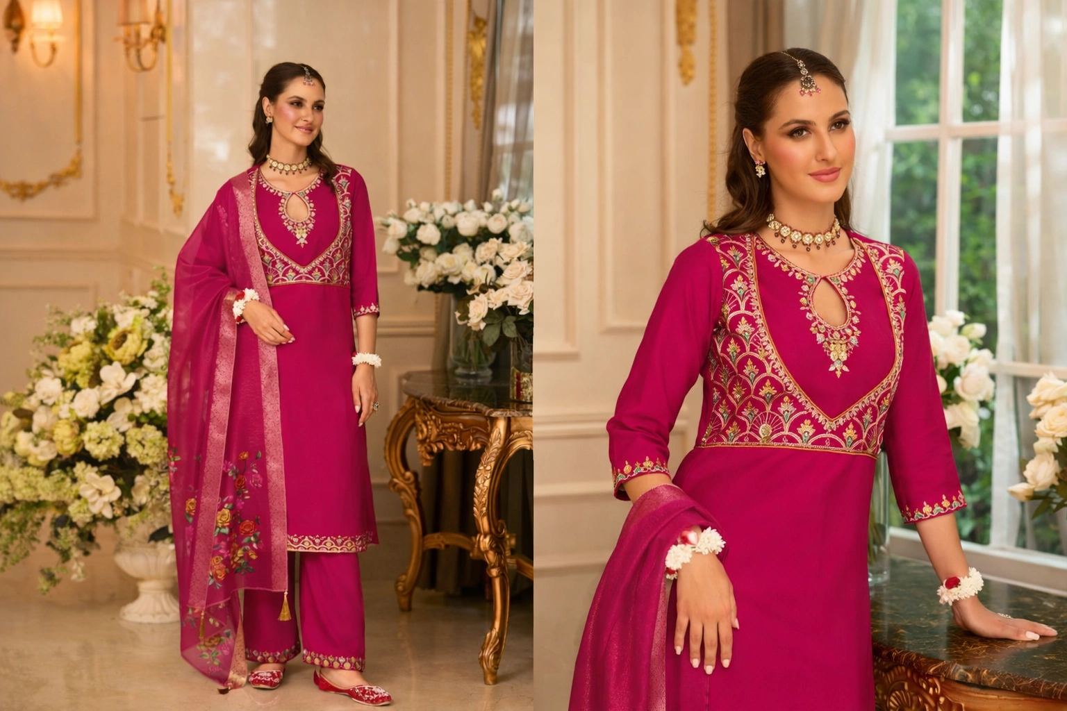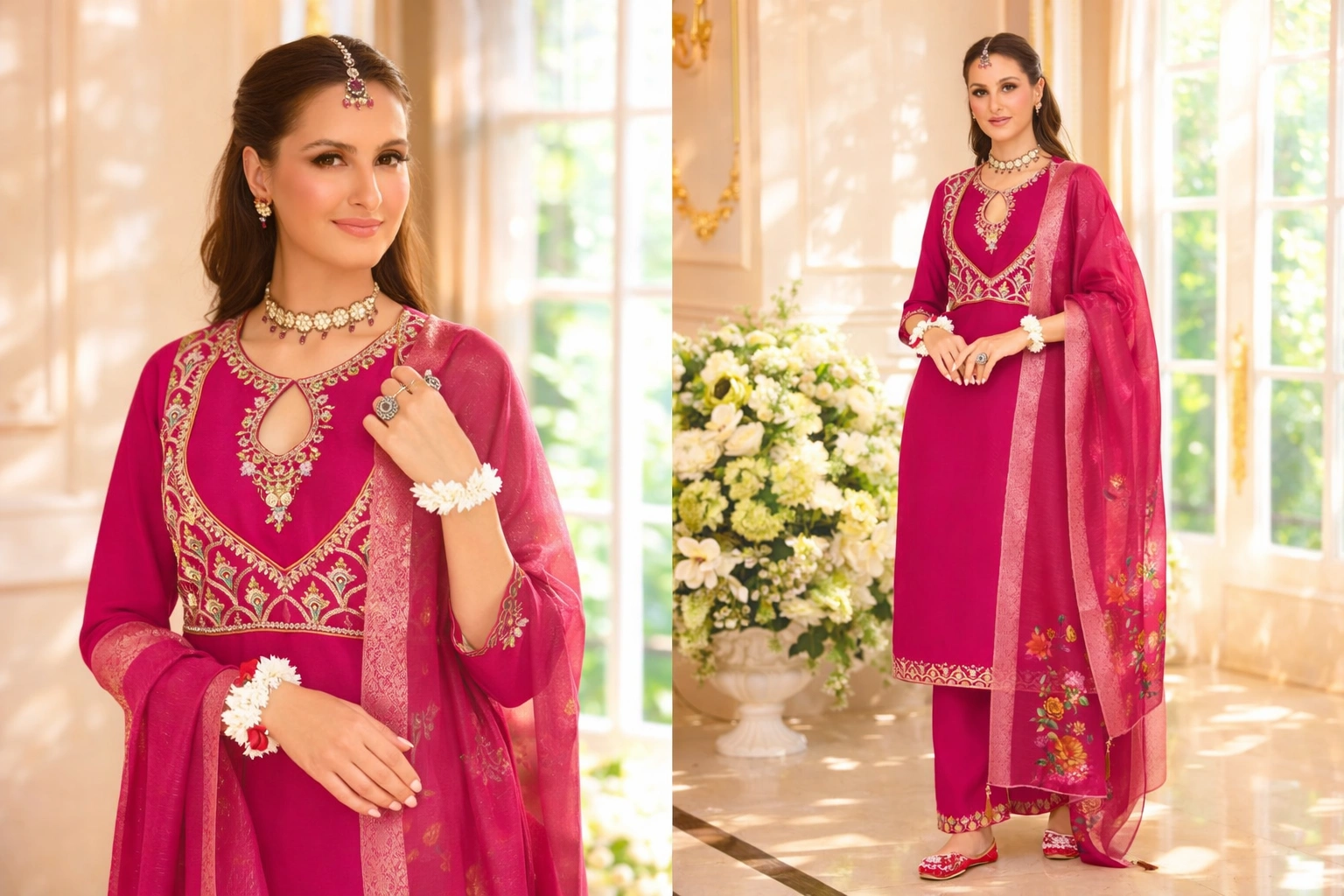 Pure Viscose Silk glamorous style Salwar Kameez (elegance in vibrant florals) by Thenusricollection