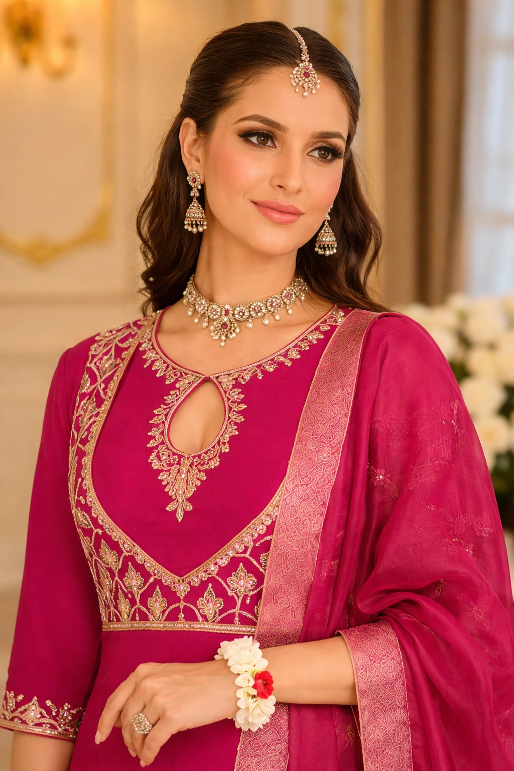 Fancy Viscose Embroidery Readymade Outfit For Women- Magenta