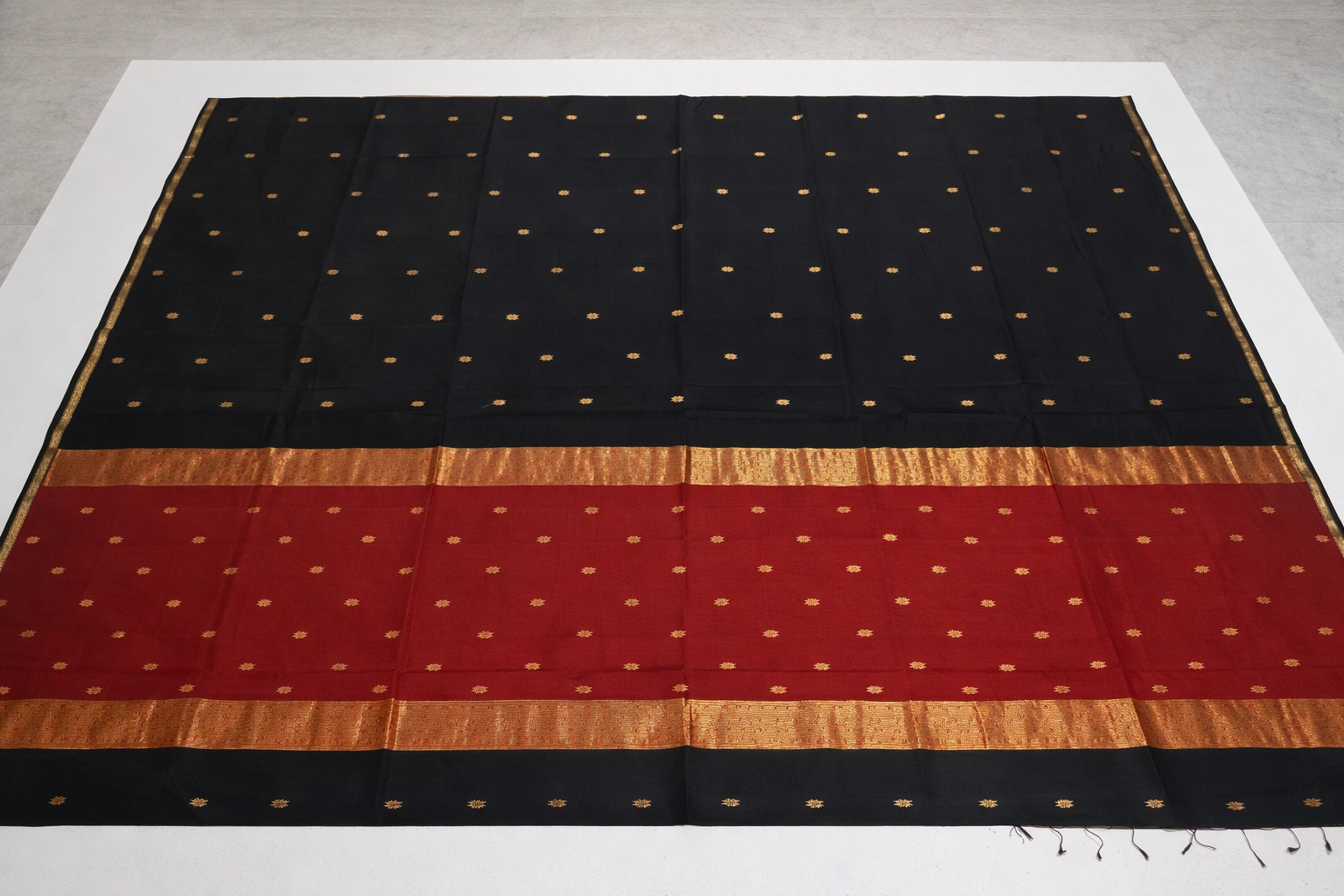 Featuring elegant Golden Zari weaving border & buttas with intricate zari work