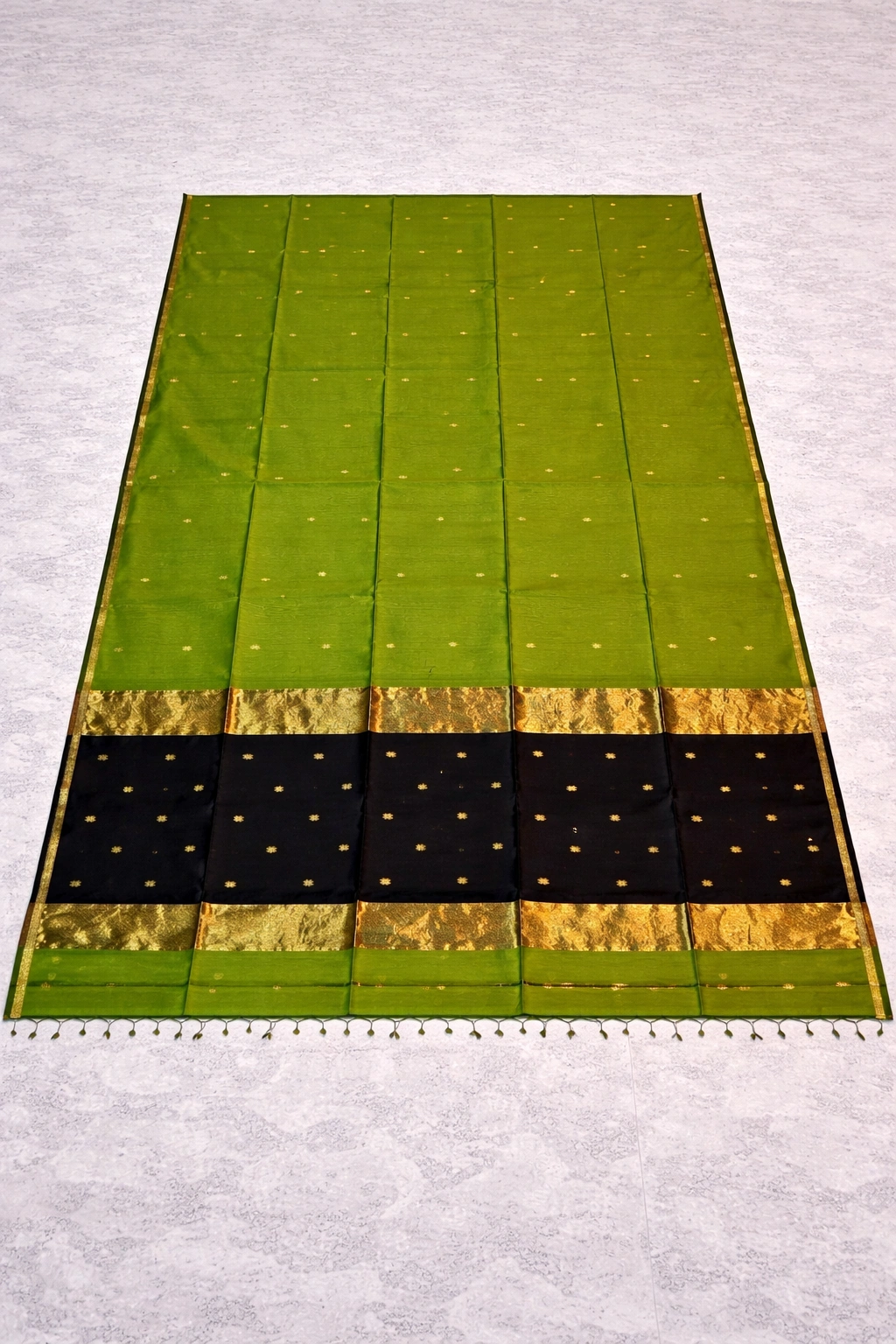 Featuring elegant Golden Zari weaving border & buttas with intricate zari work