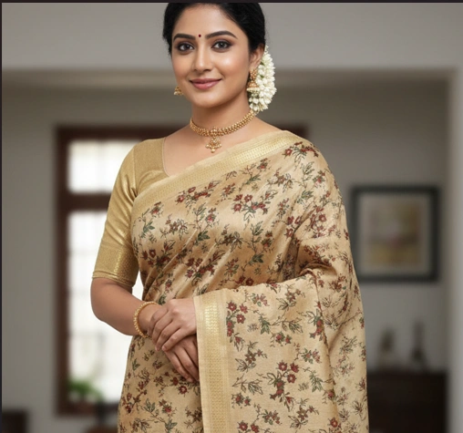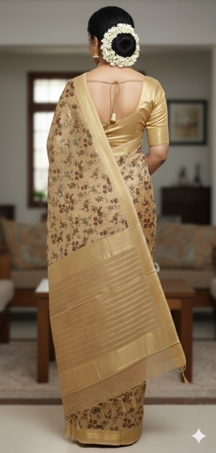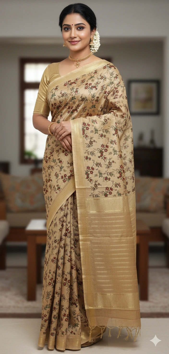 Bhagalpuri Kota Staple Dovi jari border design block print saree by Thenusri Collection