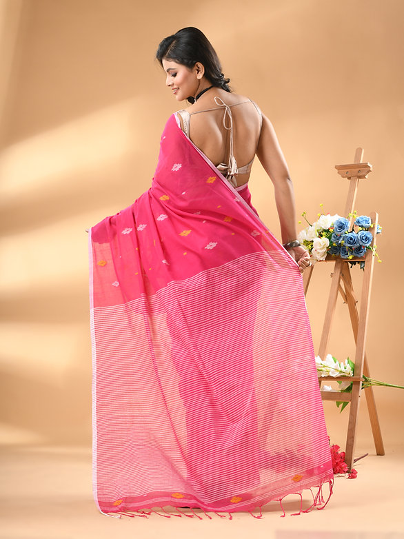 Pure Cotton Handloom Saree With Blouse Piece – Pink