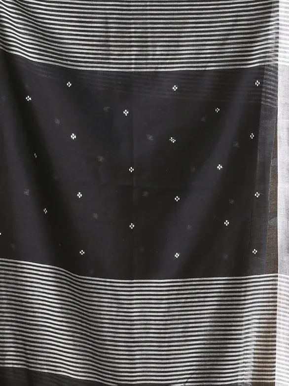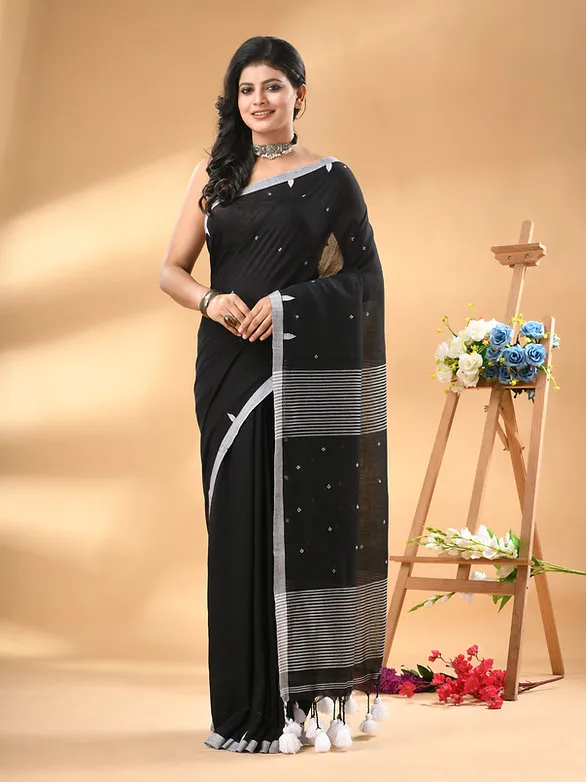 Pure Cotton saree with Needle Weaving and Running Blouse Piece – Black