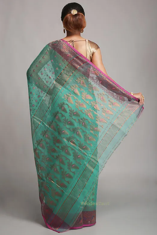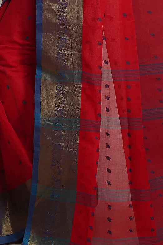 Pure West Bengal Cotton Saree with Needle Weaving and Running Blouse Piece