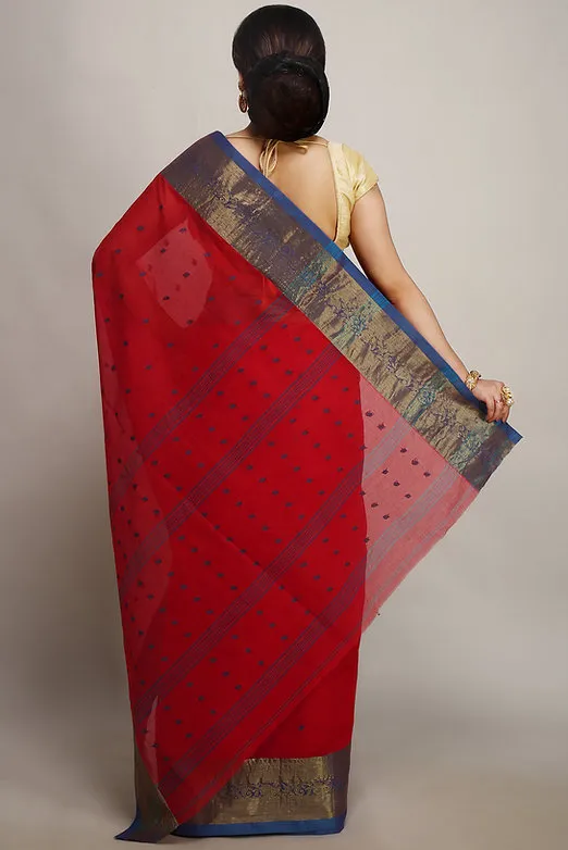 Pure Cotton Tant Saree in Red with Designer Zari Border