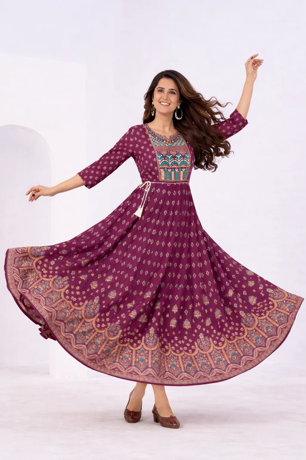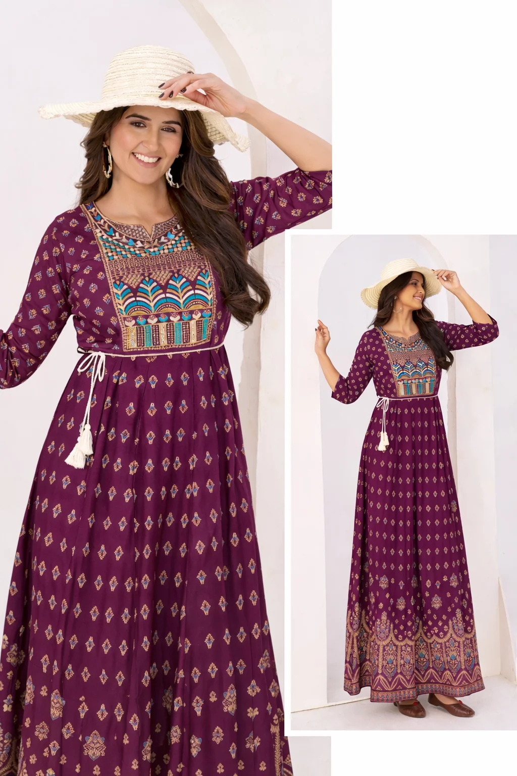 Anarkali Gown Classic Neck Embroidery with Belt