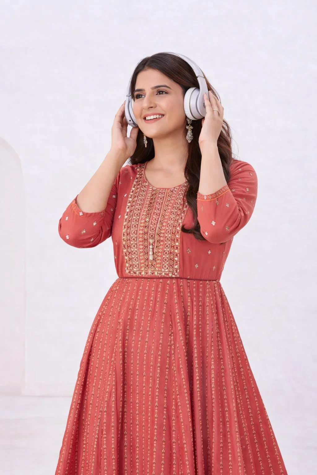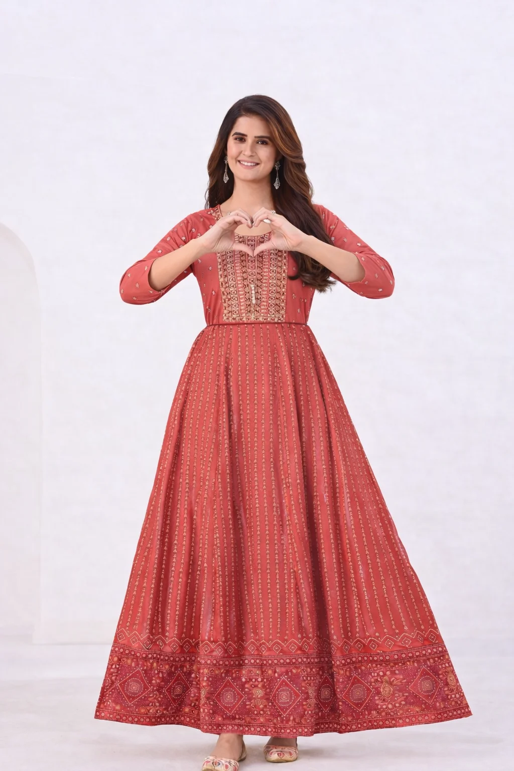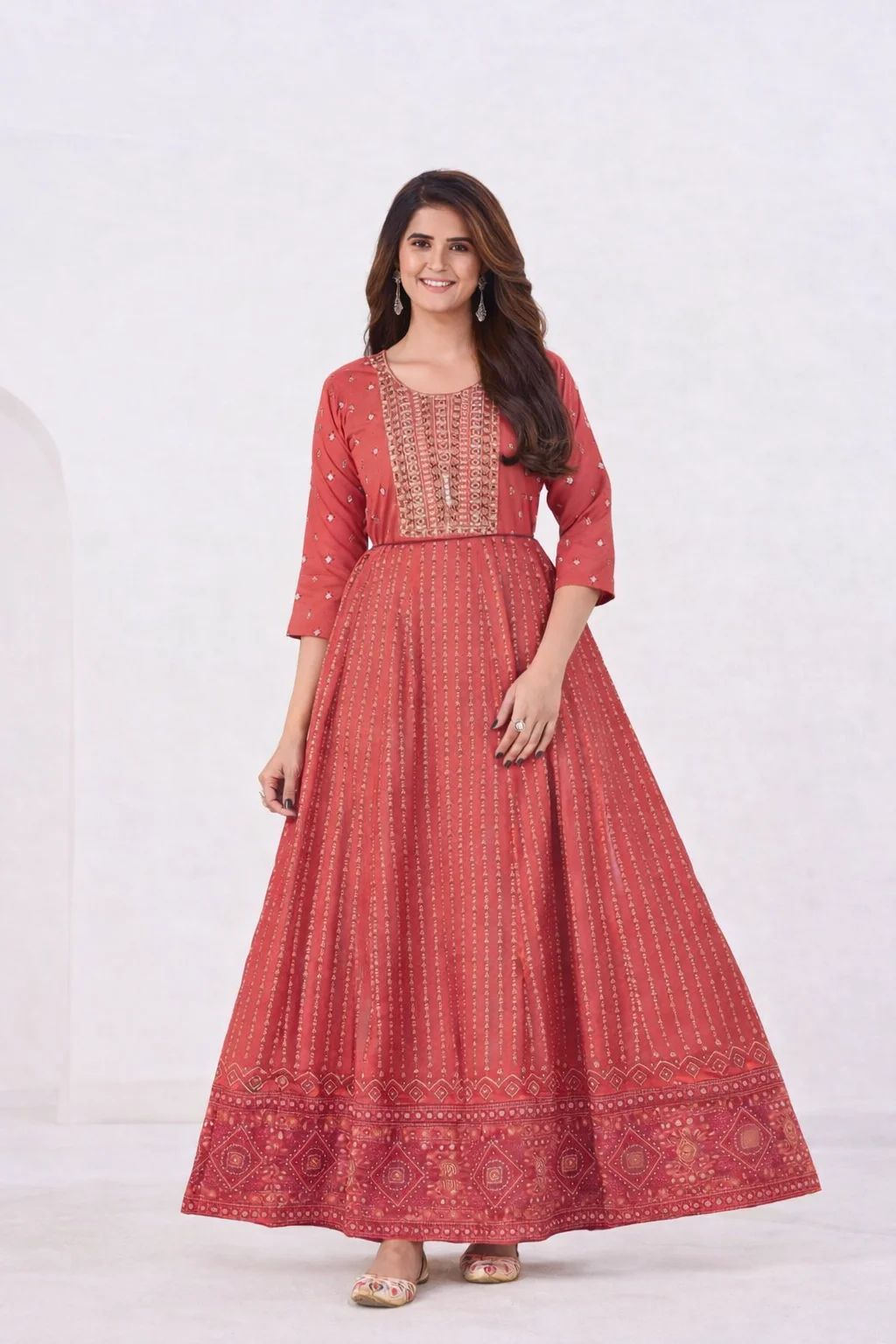 Rayon Anarkali Gown Classic Neck Embroidery with Belt – Maroon