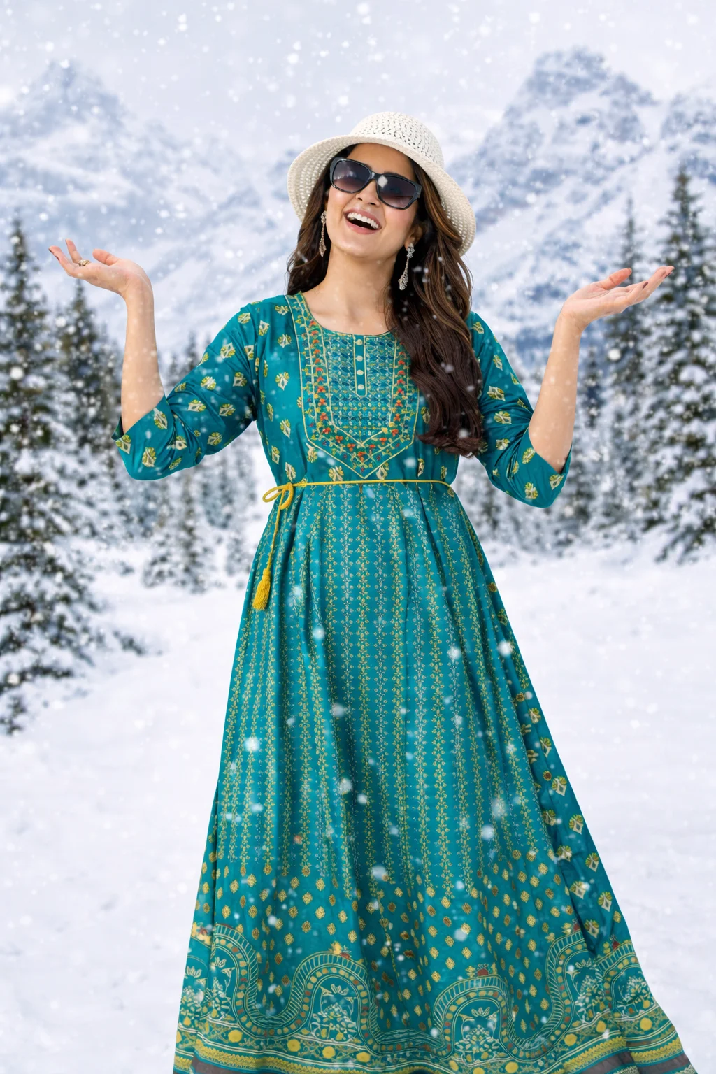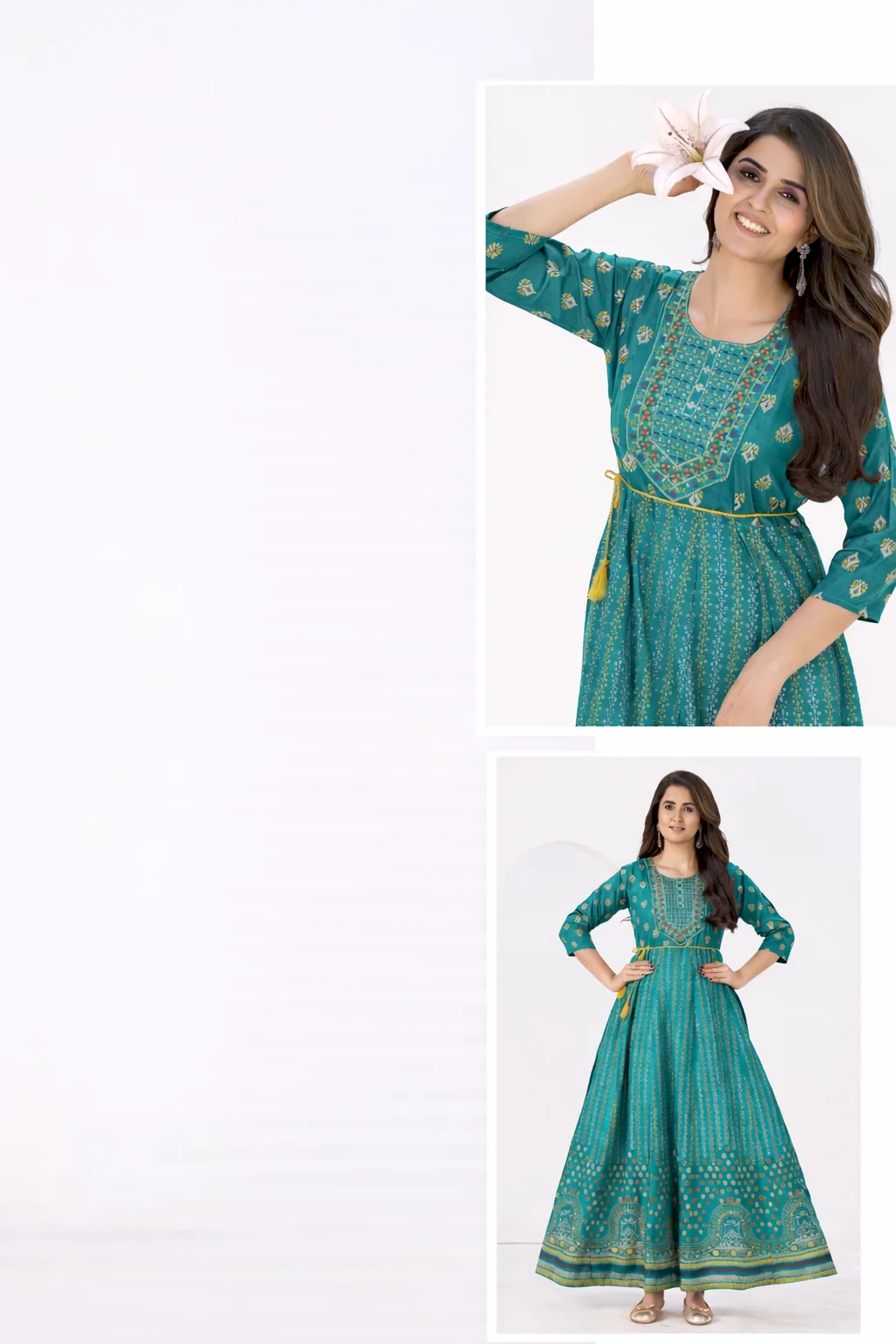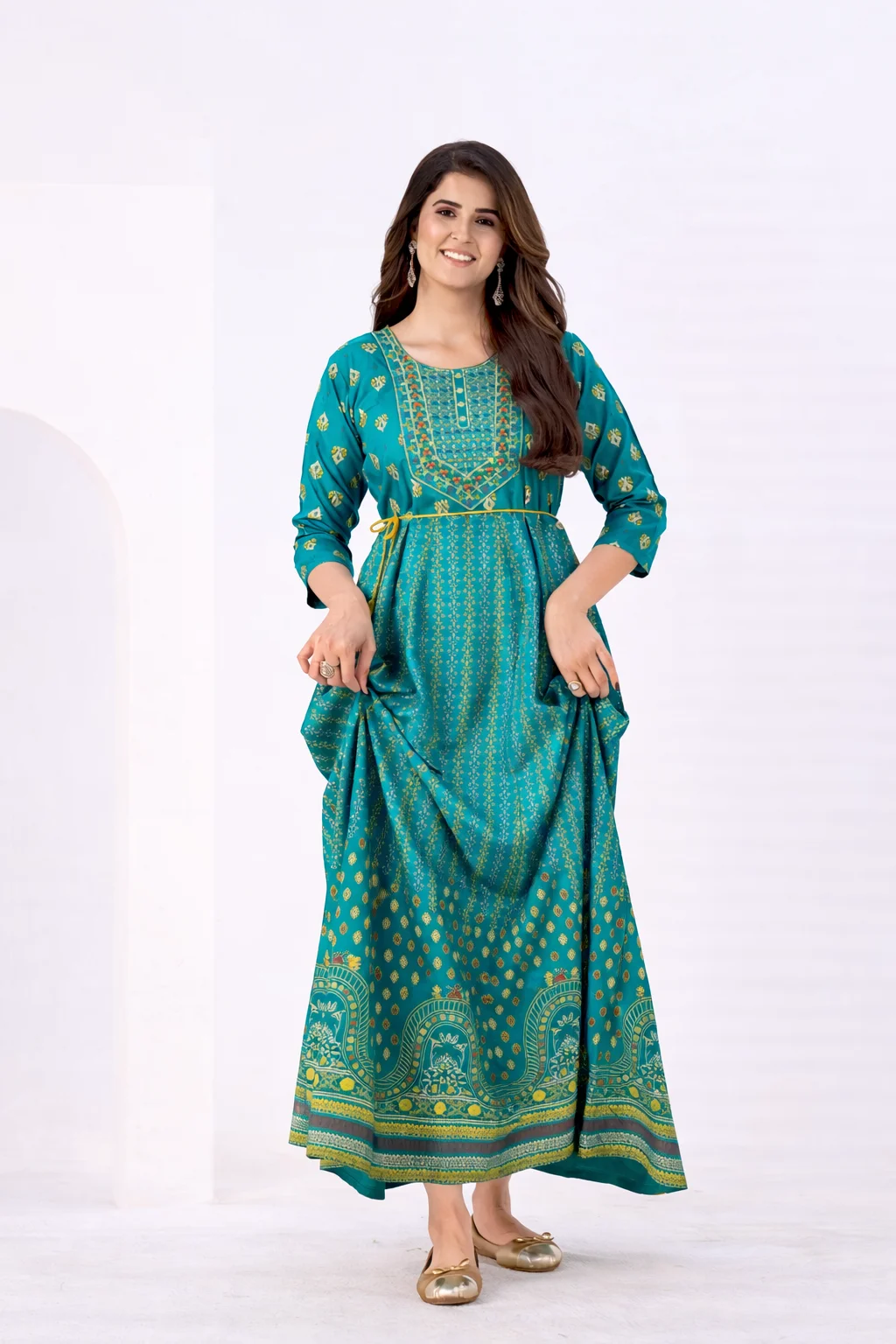 Rayon Anarkali Gown Classic Neck Embroidery with Belt – Cardamom Green