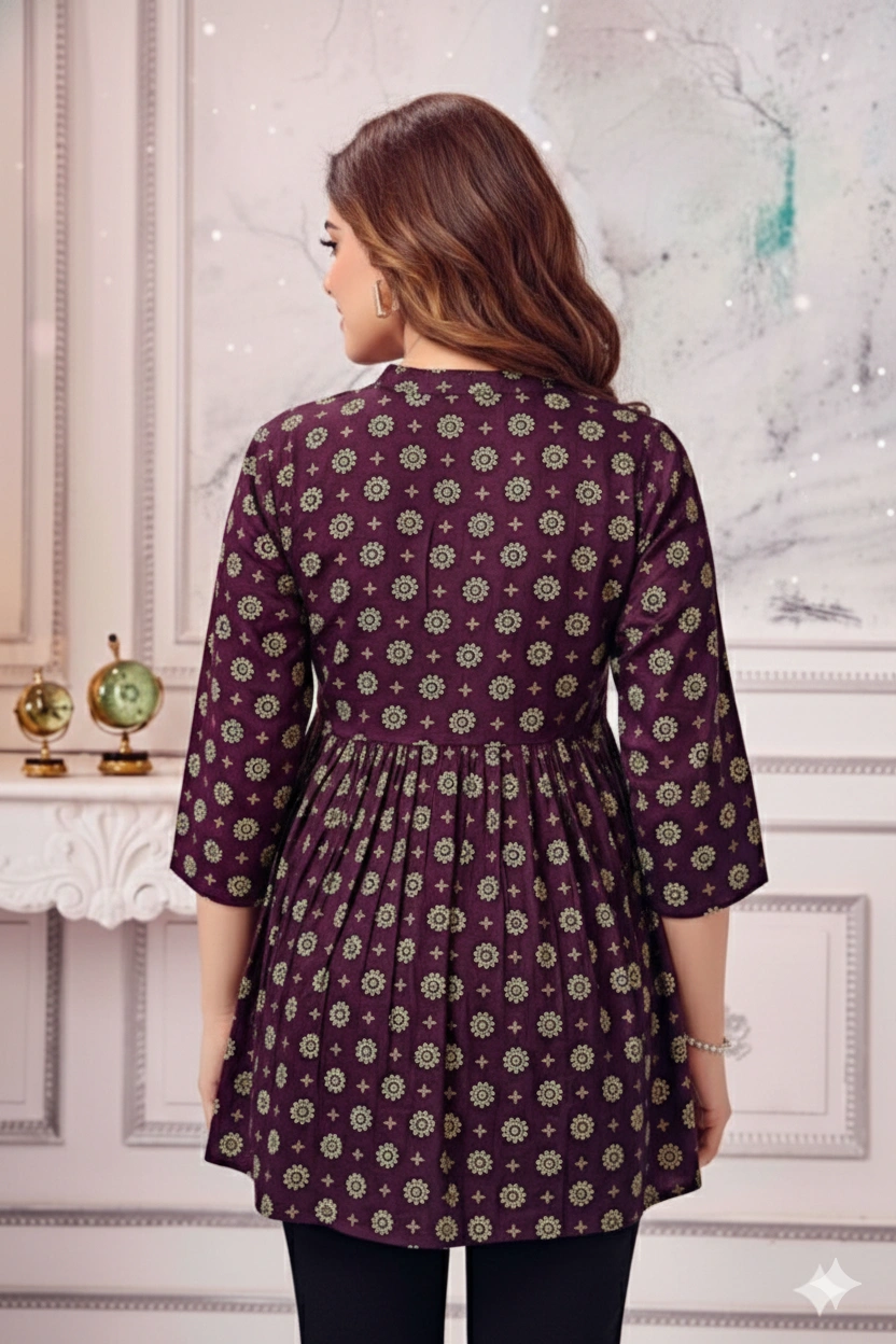 Wine Khari Printed & Embroidered Rayon A-Line Kurta Dupatta Set