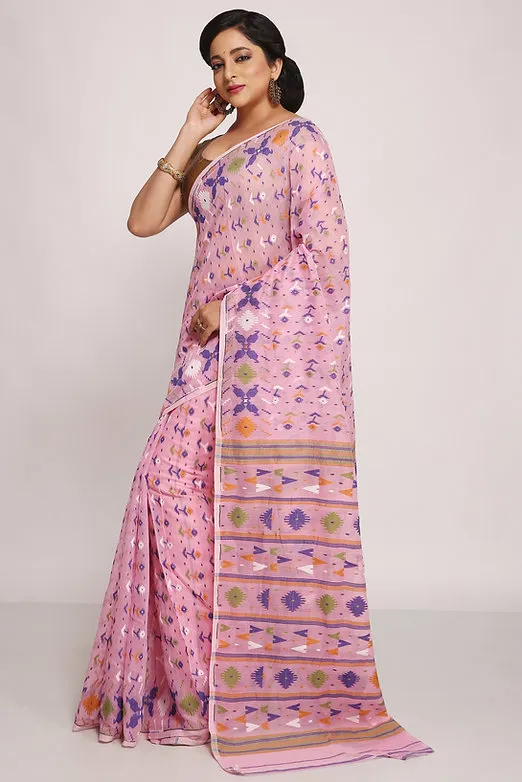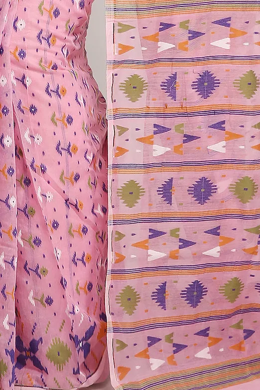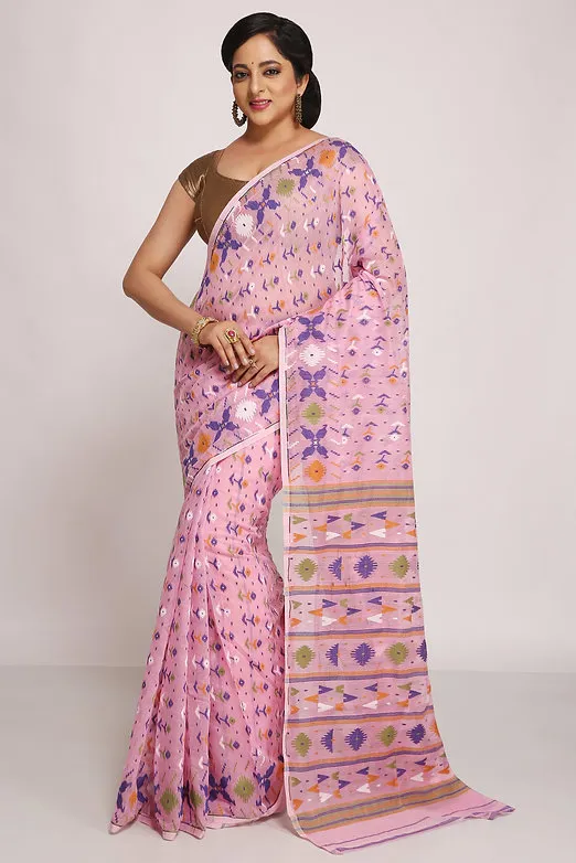 Silk Cotton Dhakai Jamdani Saree with blouse piece – Pink