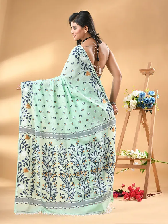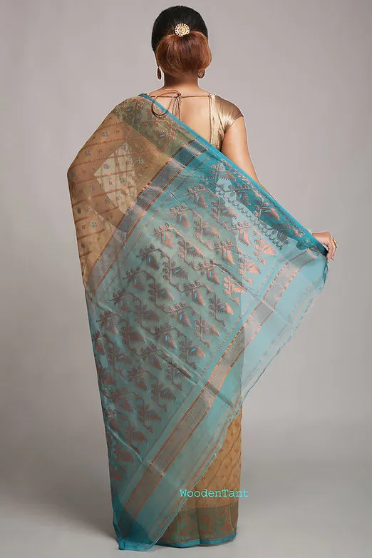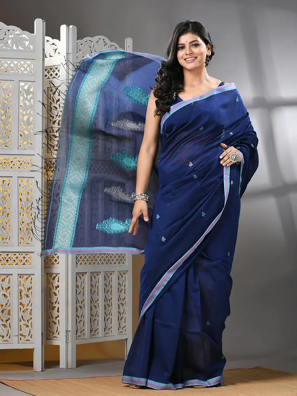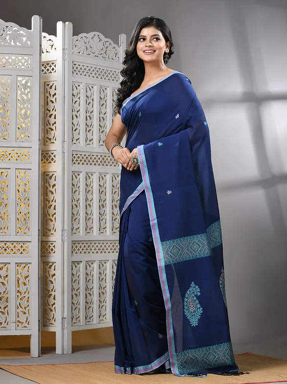 Woven design pure cotton handloom saree with blouse piece. Woven plain designs are there in Allover inside the saree with plain solid border. Saree length is 5.5 metres and width 1.2 meters and .9 metres Running Blouse piece is also Available.